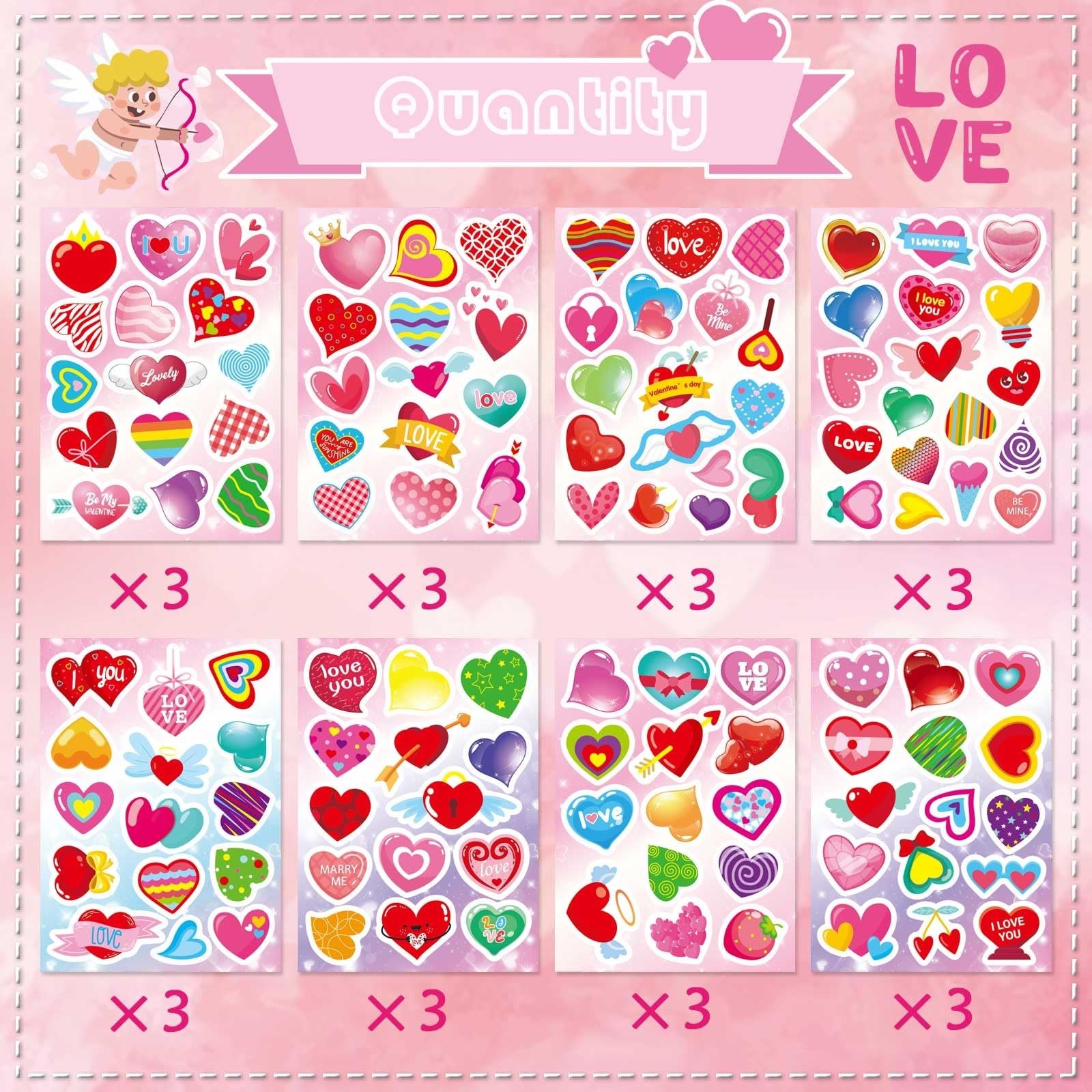 как выглядит 366 Pcs Valentine Stickers for Kids,Colorful Heart Stickers Valentines Day L... фото
