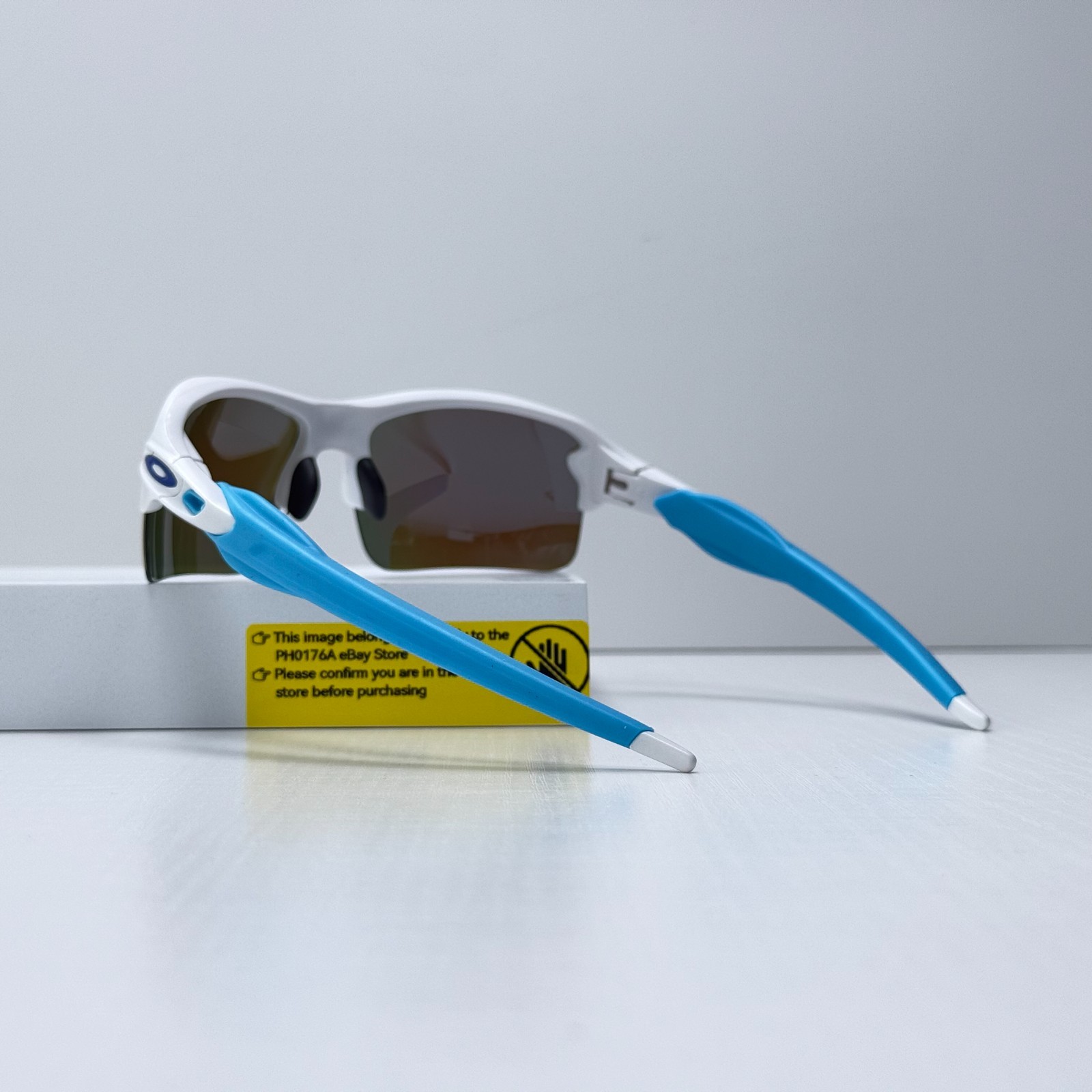 Oakley Flak 2.0 OO9271 Polarized Sunglasses White Frame Blue Temples Blue Lens