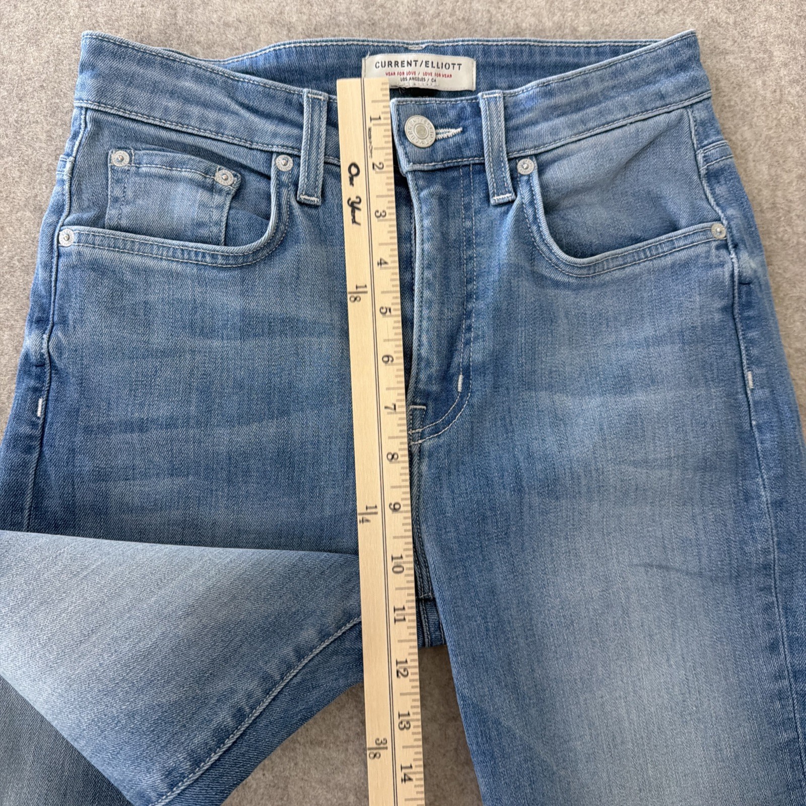 как выглядит Current Elliott Kick Crop Flare Jeans Womens 27 Medium Wash High Rise фото