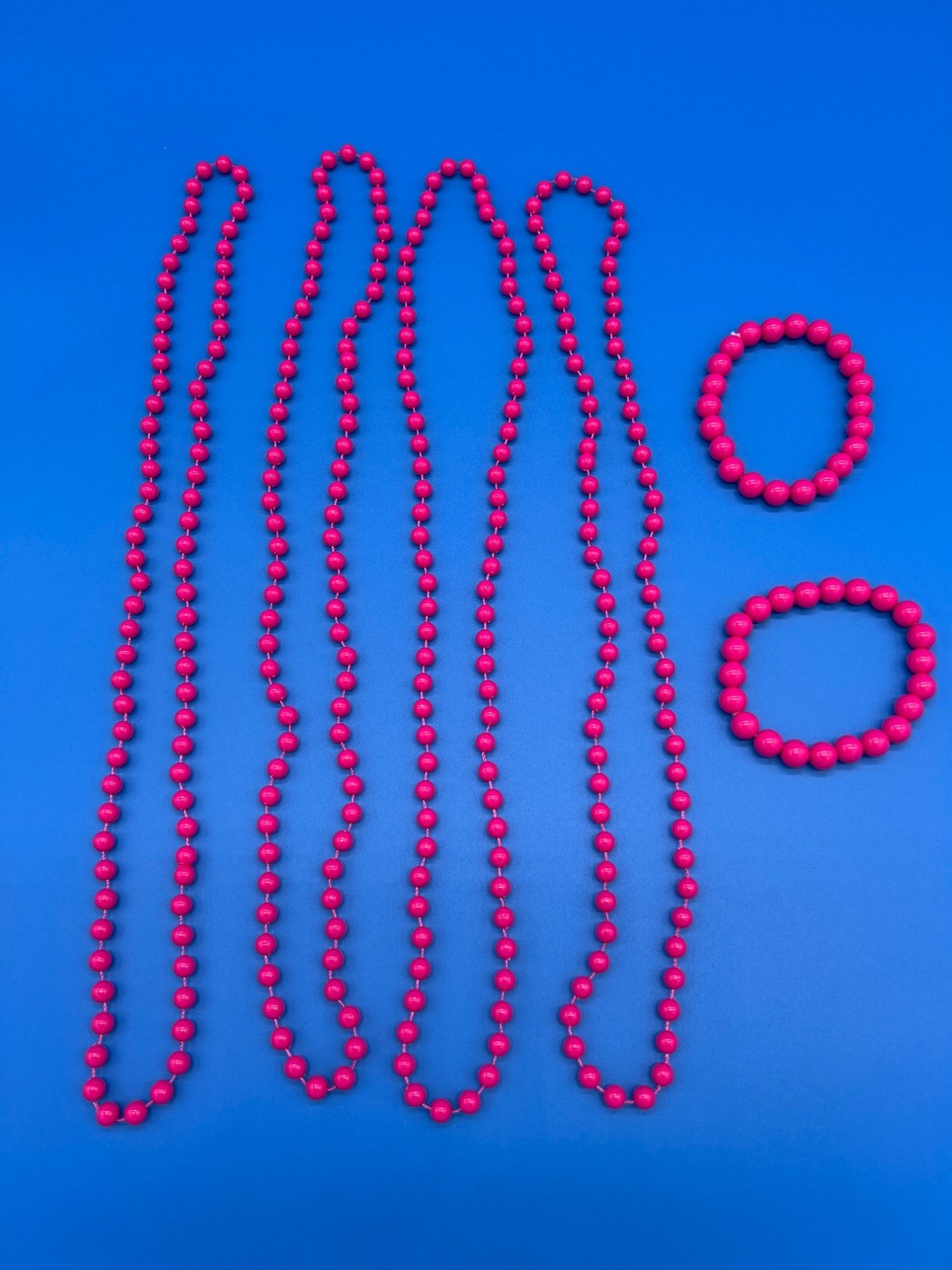 Girls 80s Neon Pink Costume Set With Headband Gloves Jewelry