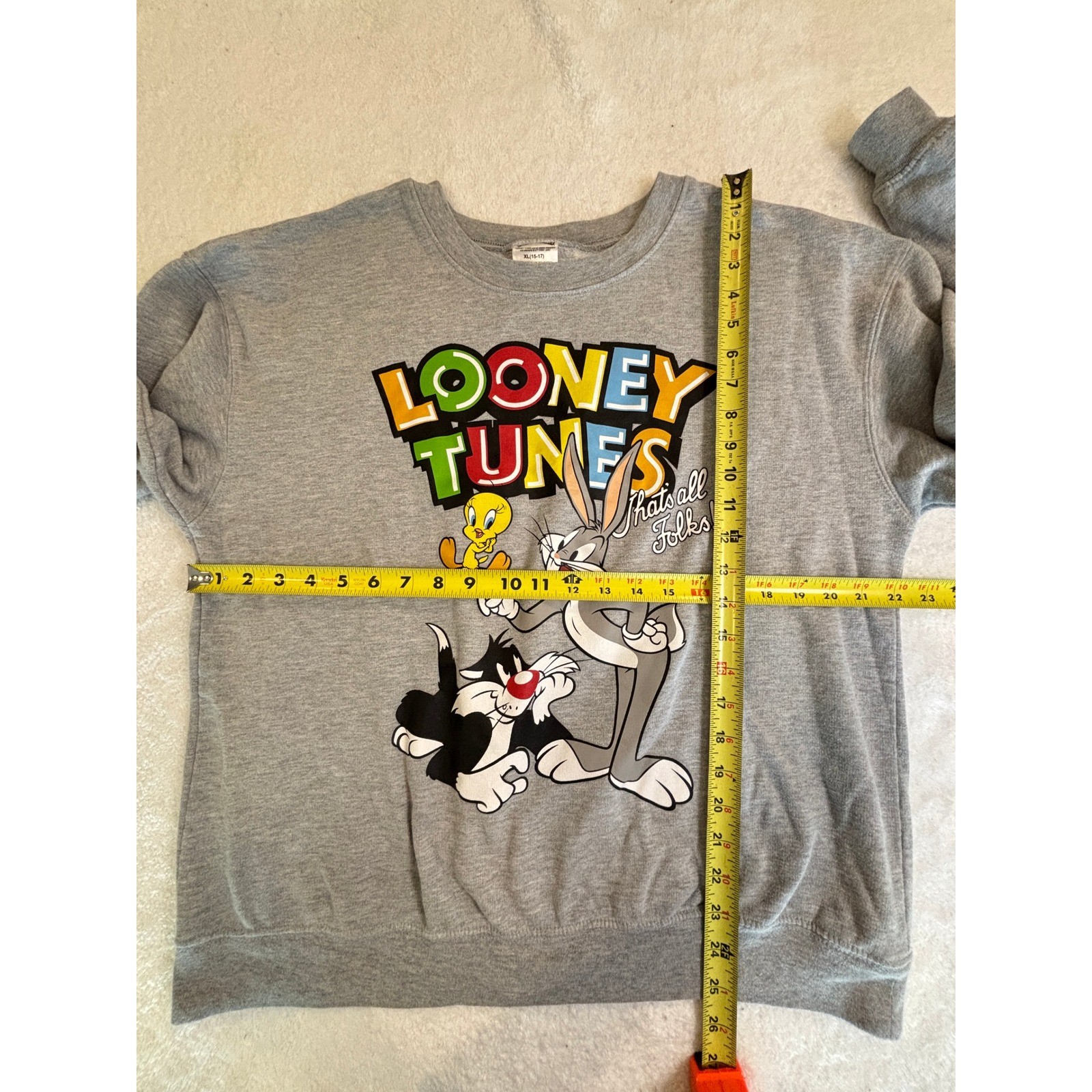 Looney Tunes Bugs Bunny Tweety Sylvester Graphic Sweatshirt Grey XL 15-17