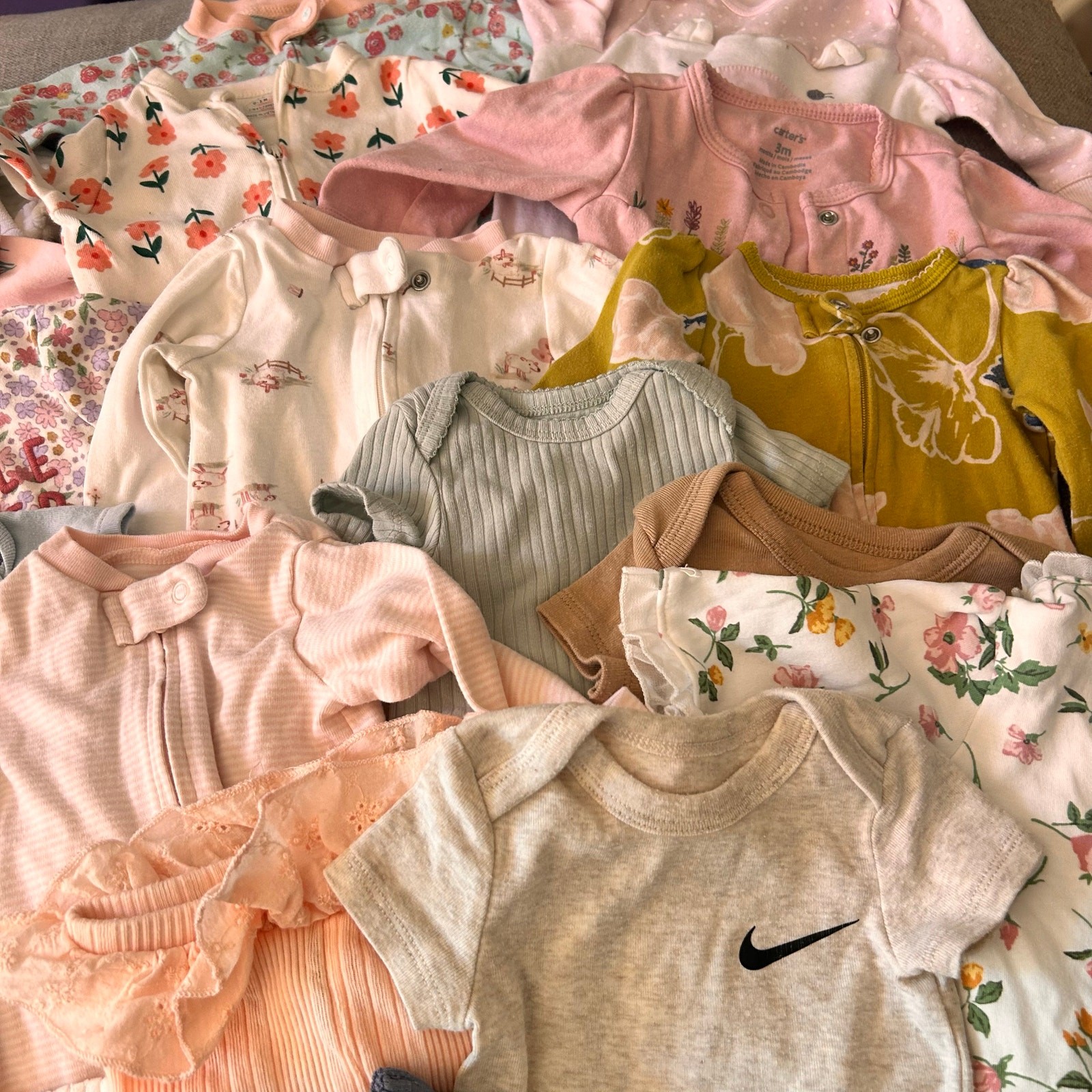 Lot of 20 Baby Girl Clothes 0-3mo 3-6mo Carters Gerber Burt s Bees Cloud Island