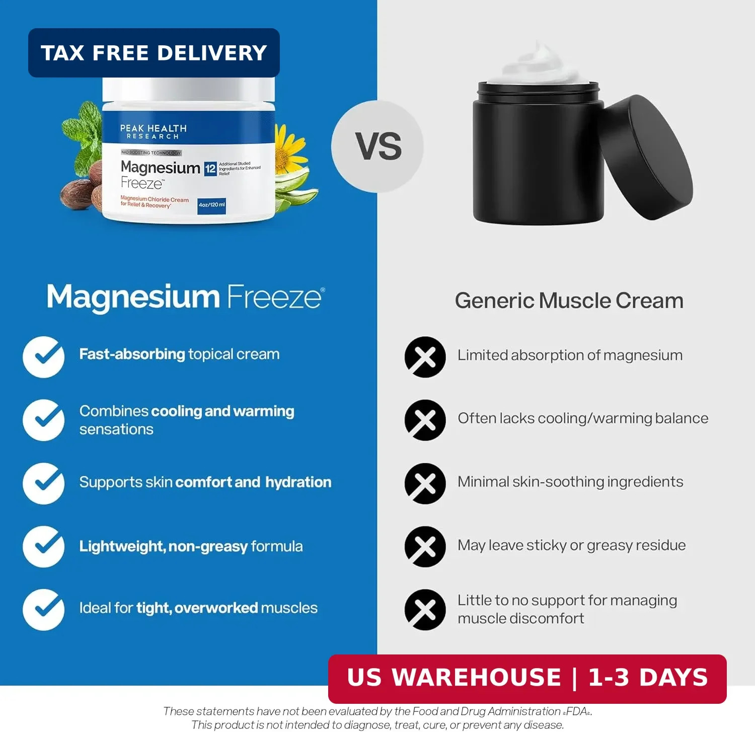 Magnesium Freeze - Topical Magnesium Cream with Niacinamide for Joints, Low B...