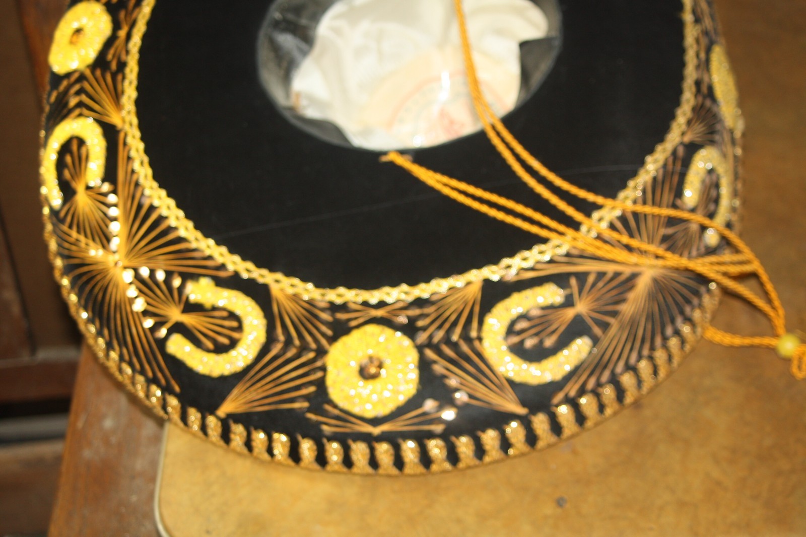 как выглядит Vintage J. Jesus Linan Black Gold XXXXX Mexican Sombrero Mariachi Hat -Large фото