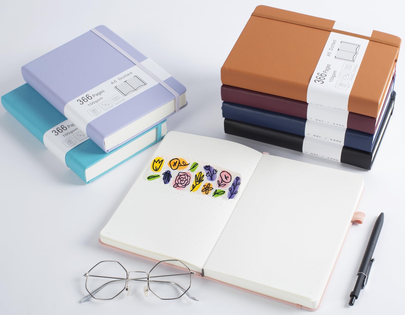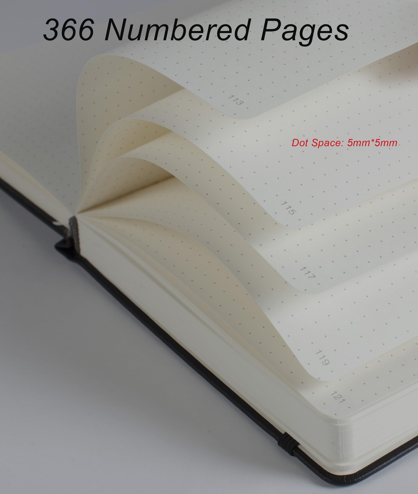 Thick Bullet Notebook with 366 Numbered Pages, A5 Dotted Journal for Writing ...