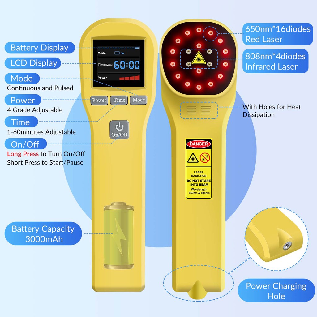 Handheld Class 3 LLLT Laser Therapy 880mW Pain Relief Healing for Dogs Pets