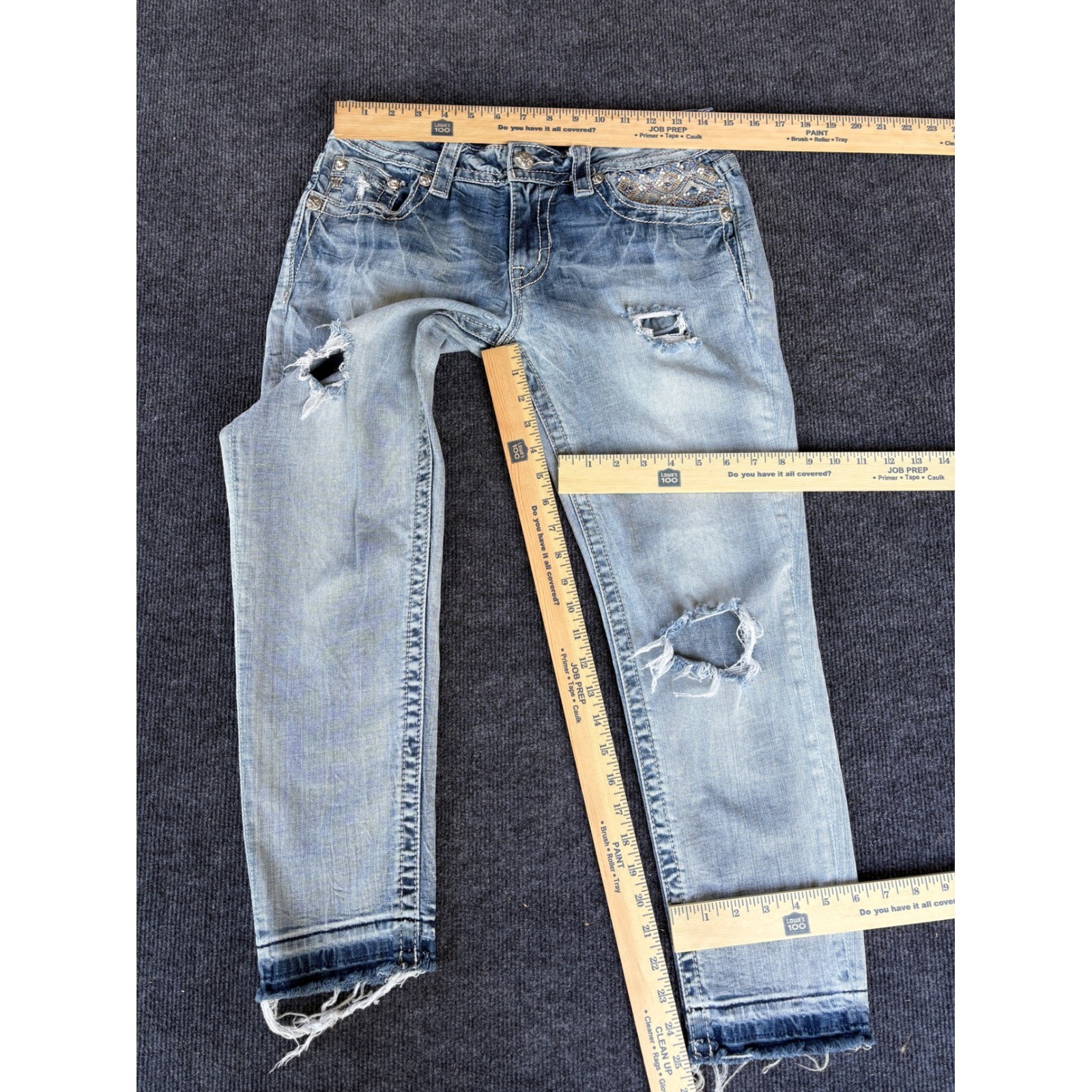 Miss Me Signature Ankle Skinny Jeans Light Wash Distressed Beaded Size 30