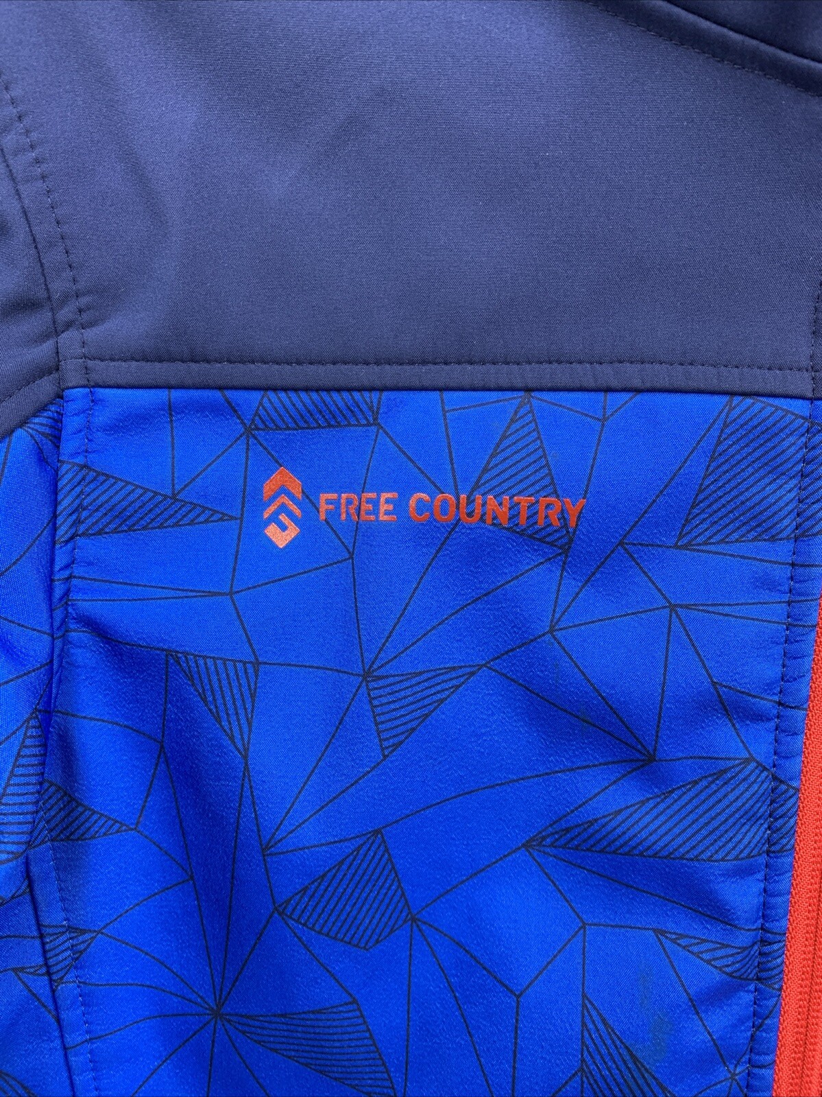 Free Country Soft Shell Jacket Hooded Geometric Boys Size XL 10/12 Blue Red Navy