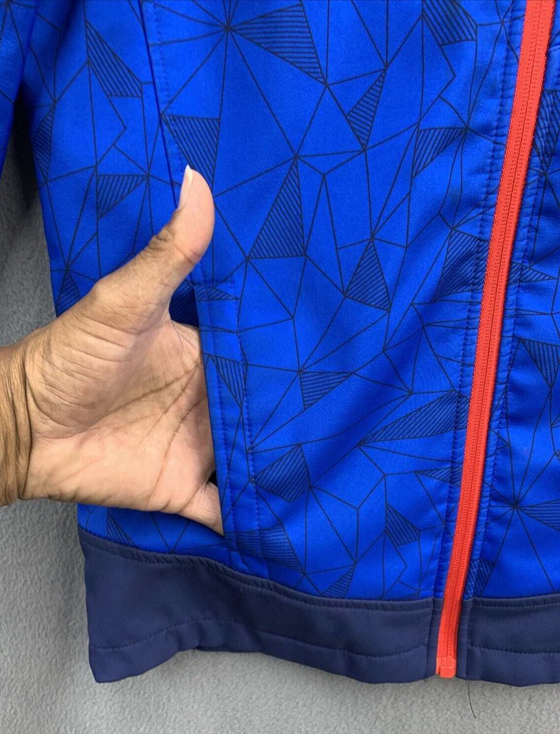как выглядит Free Country Soft Shell Jacket Hooded Geometric Boys Size XL 10/12 Blue Red Navy фото