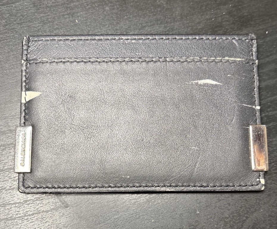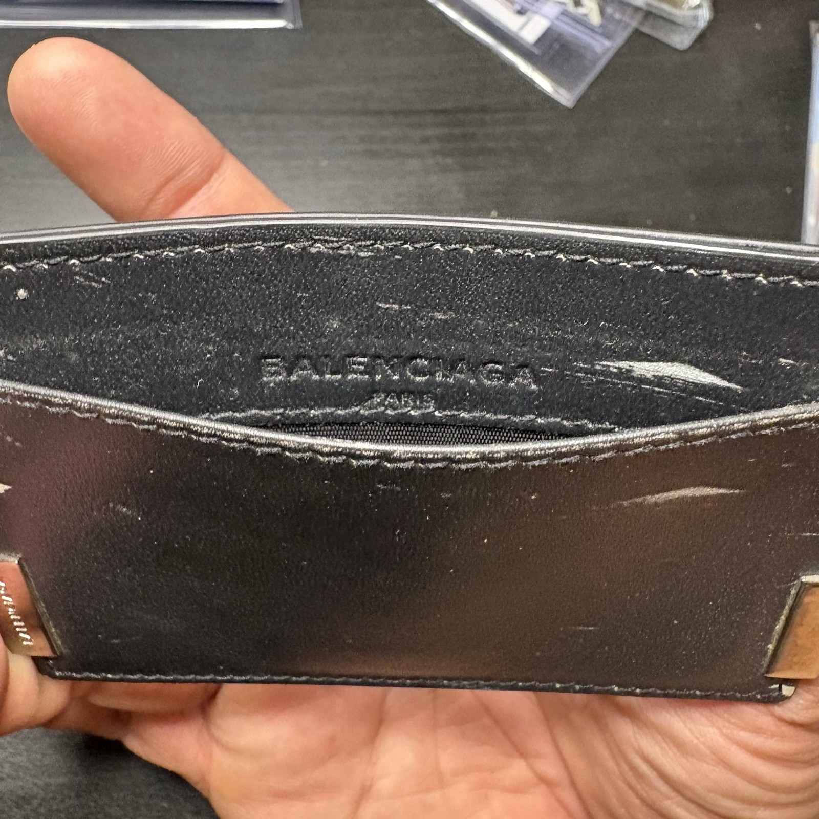 Authentic Balenciaga Paris Black Metal Stud Plate Card Holder Tape Scuff Design