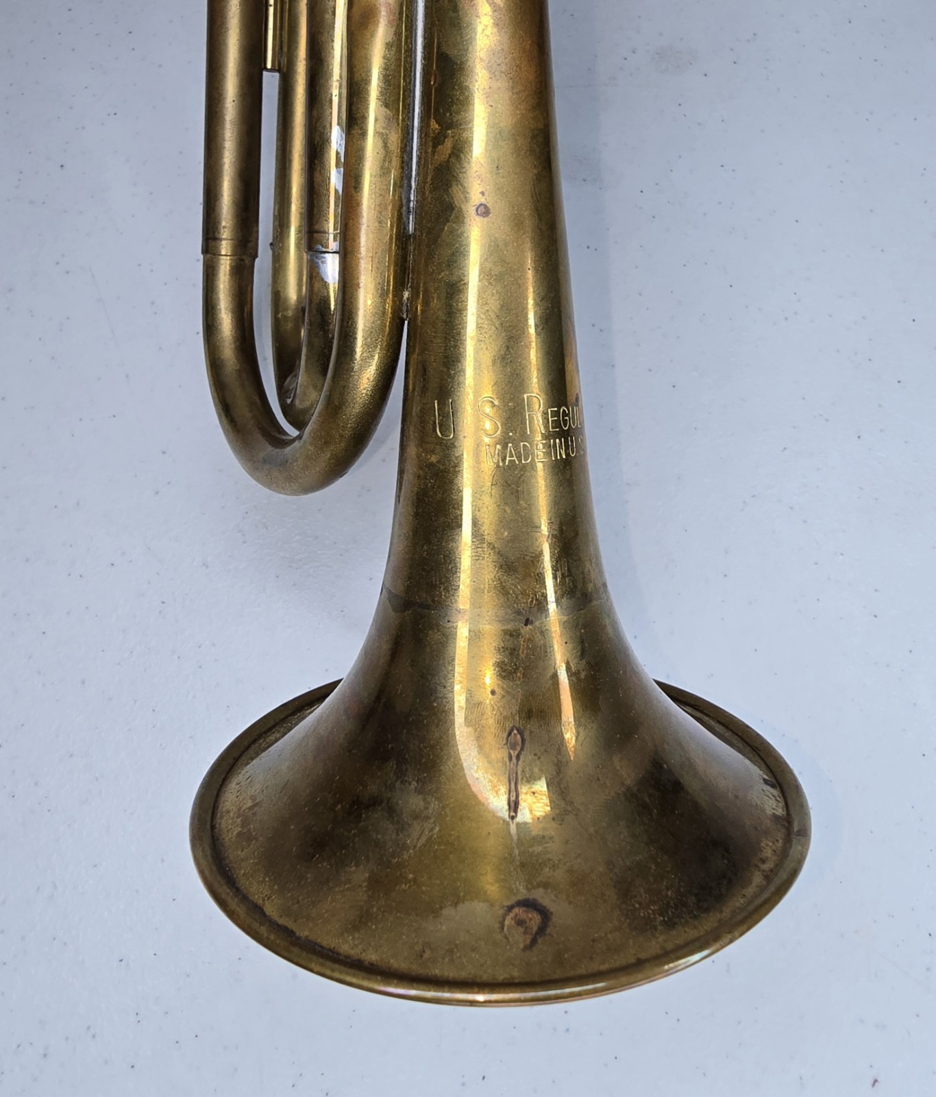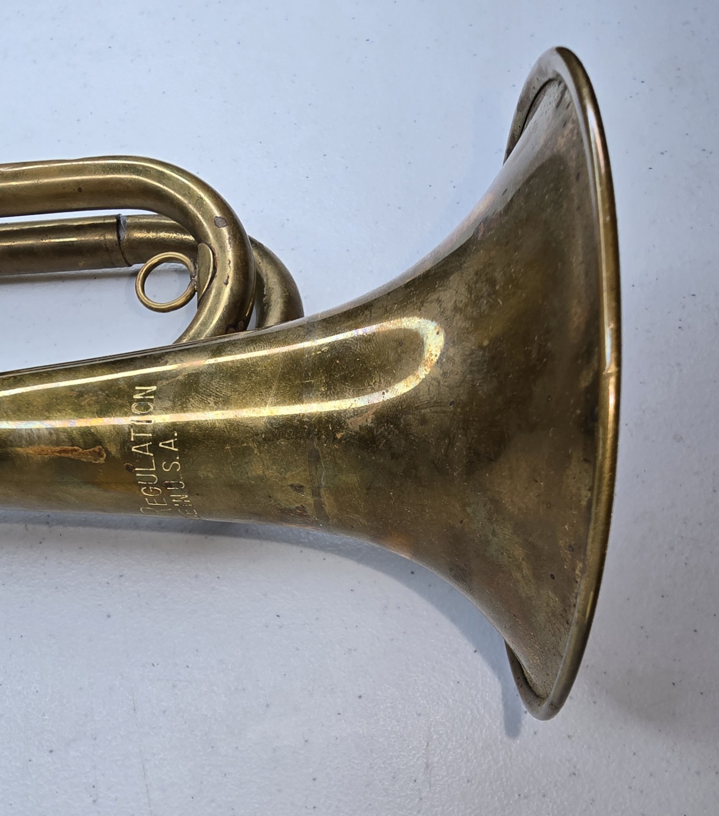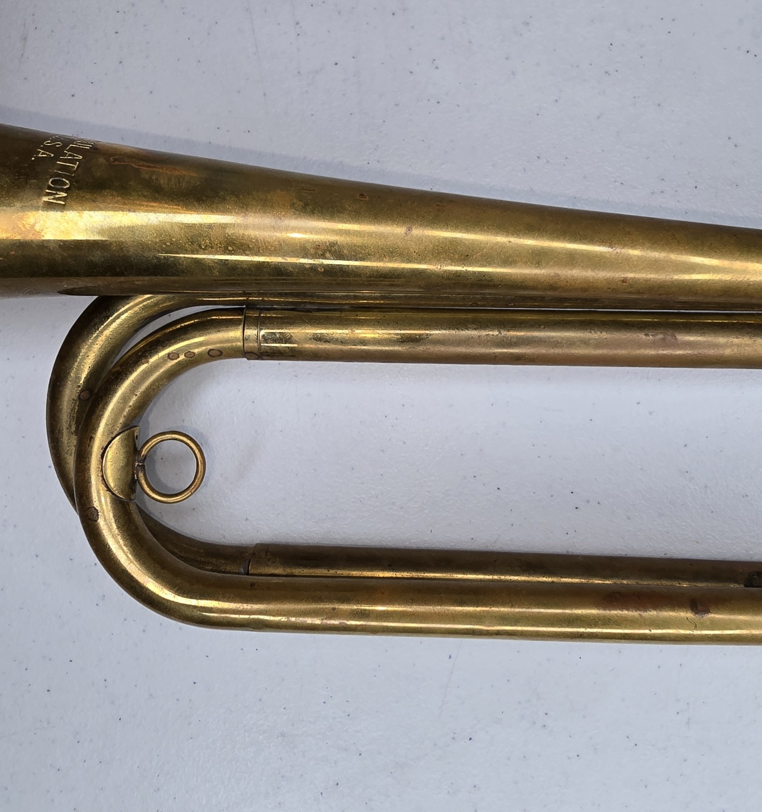 Vintage U.S. Regulation Made In USA Brass Bugle w/ Original Bag Mouthpiece