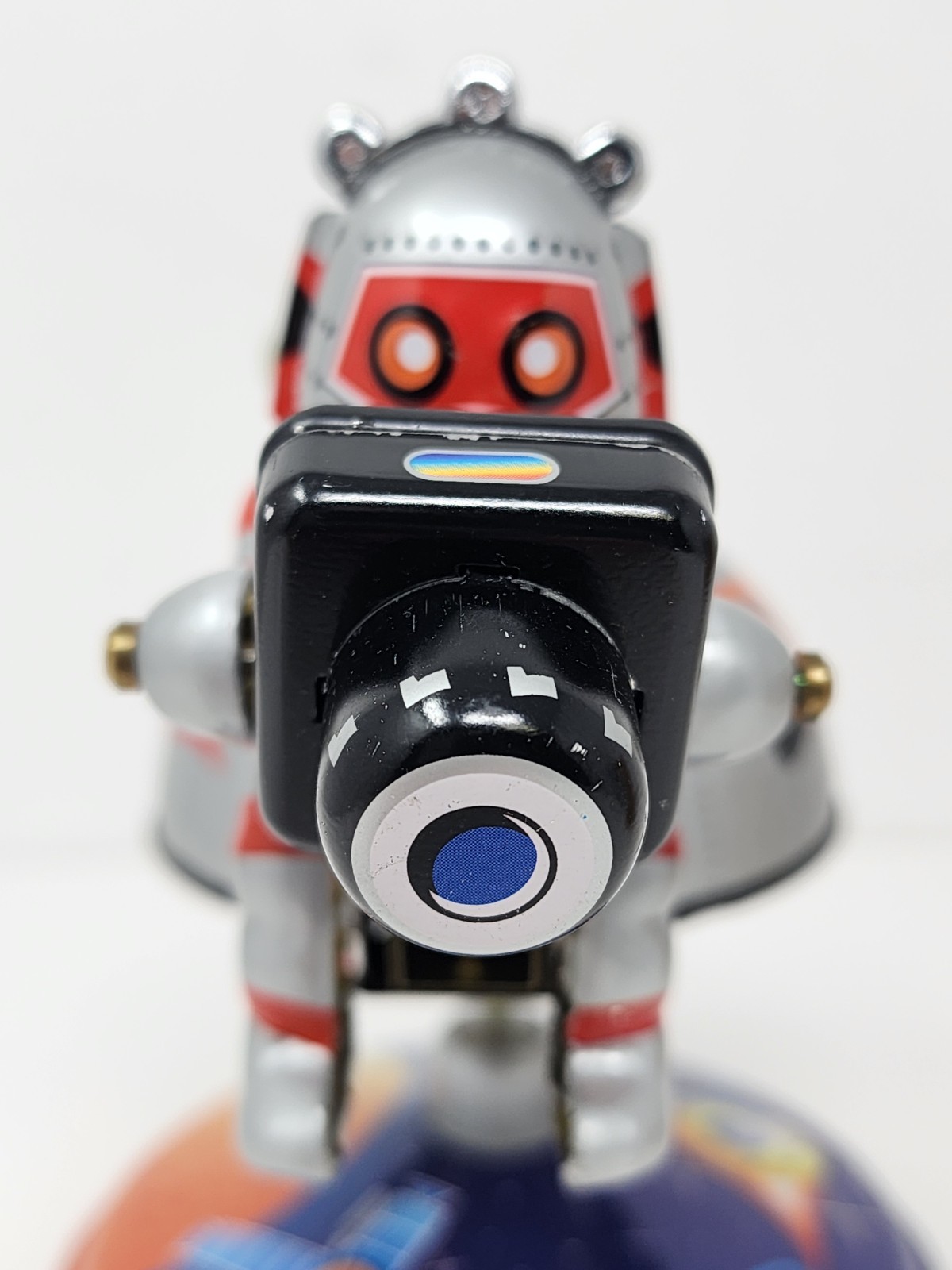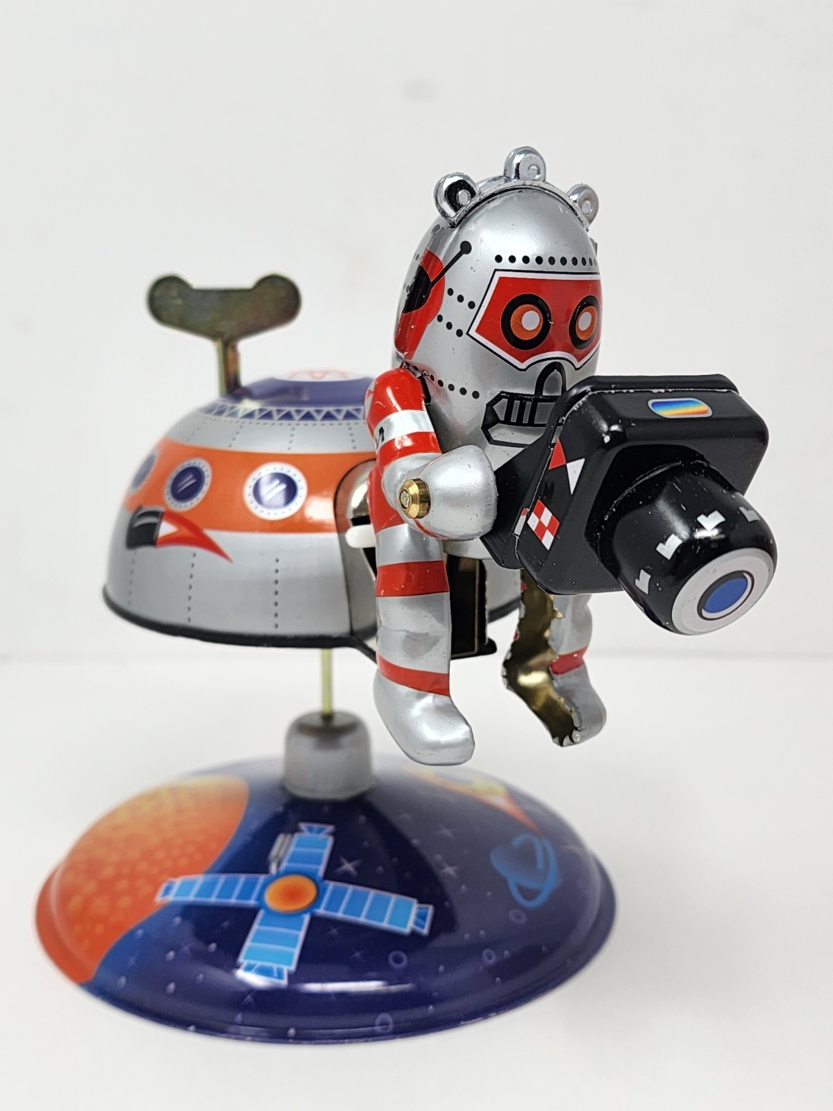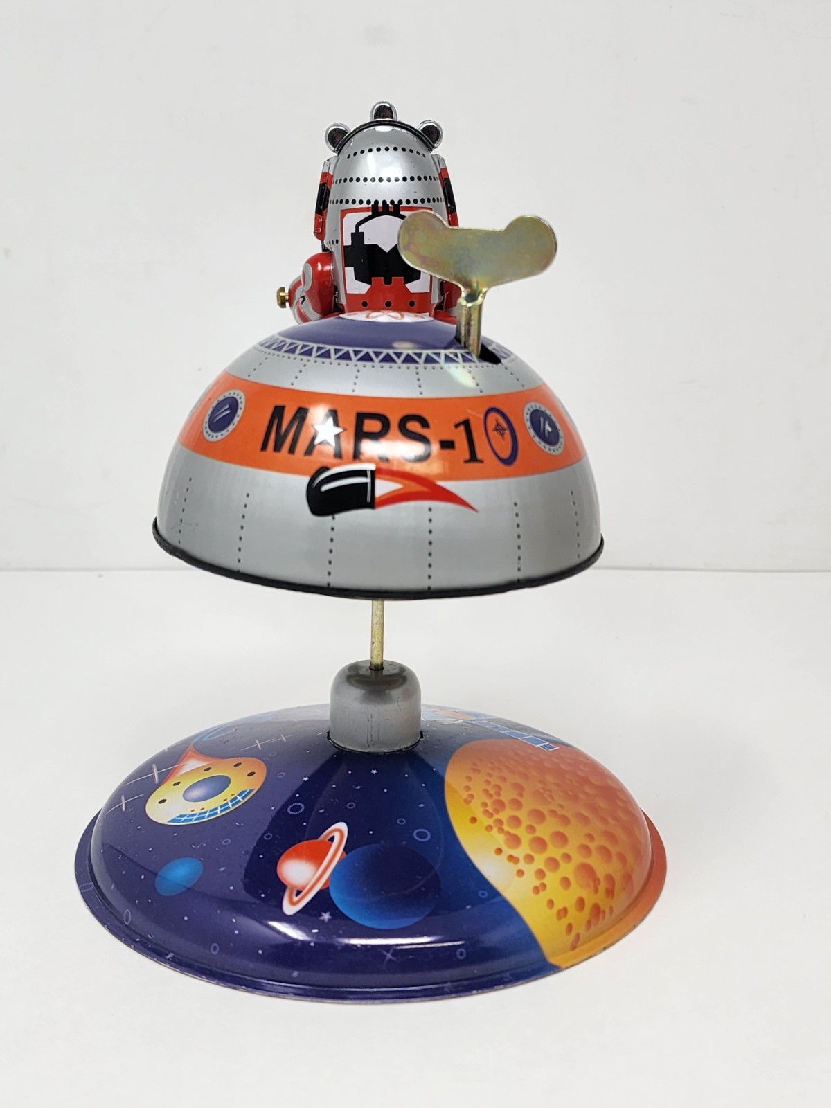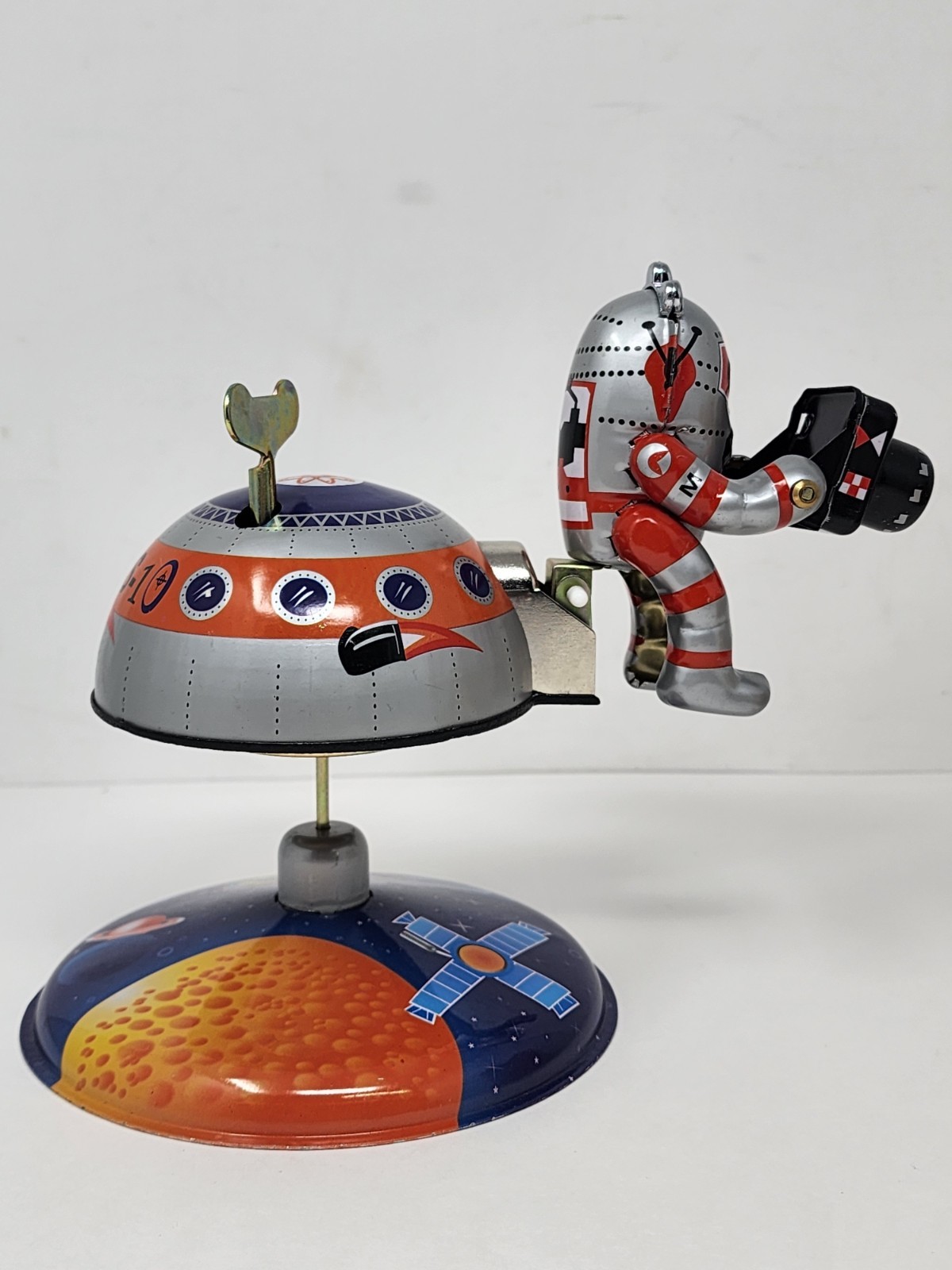 как выглядит Space Station Robot Windup Tin Toy With Key MS 375 Rotates Original Box фото