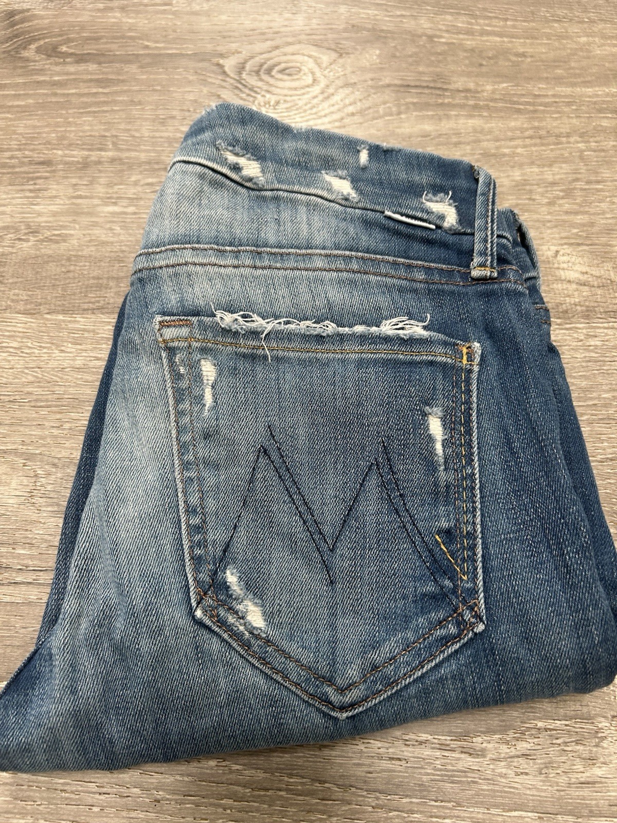 Mother Women s Anthropologie Blue Distressed The Looker Zip Jeans 24 190