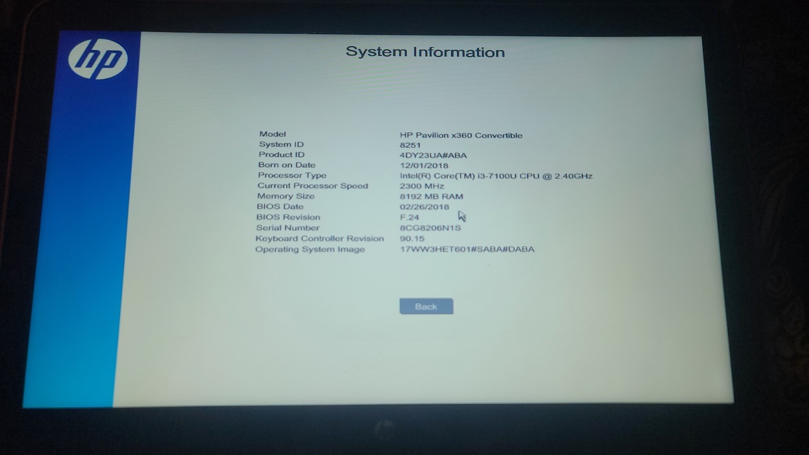 HP Pavilion x360 15-bk168cl 15.5 HD Touch i3-7100U 8GB, Does Not Reset.