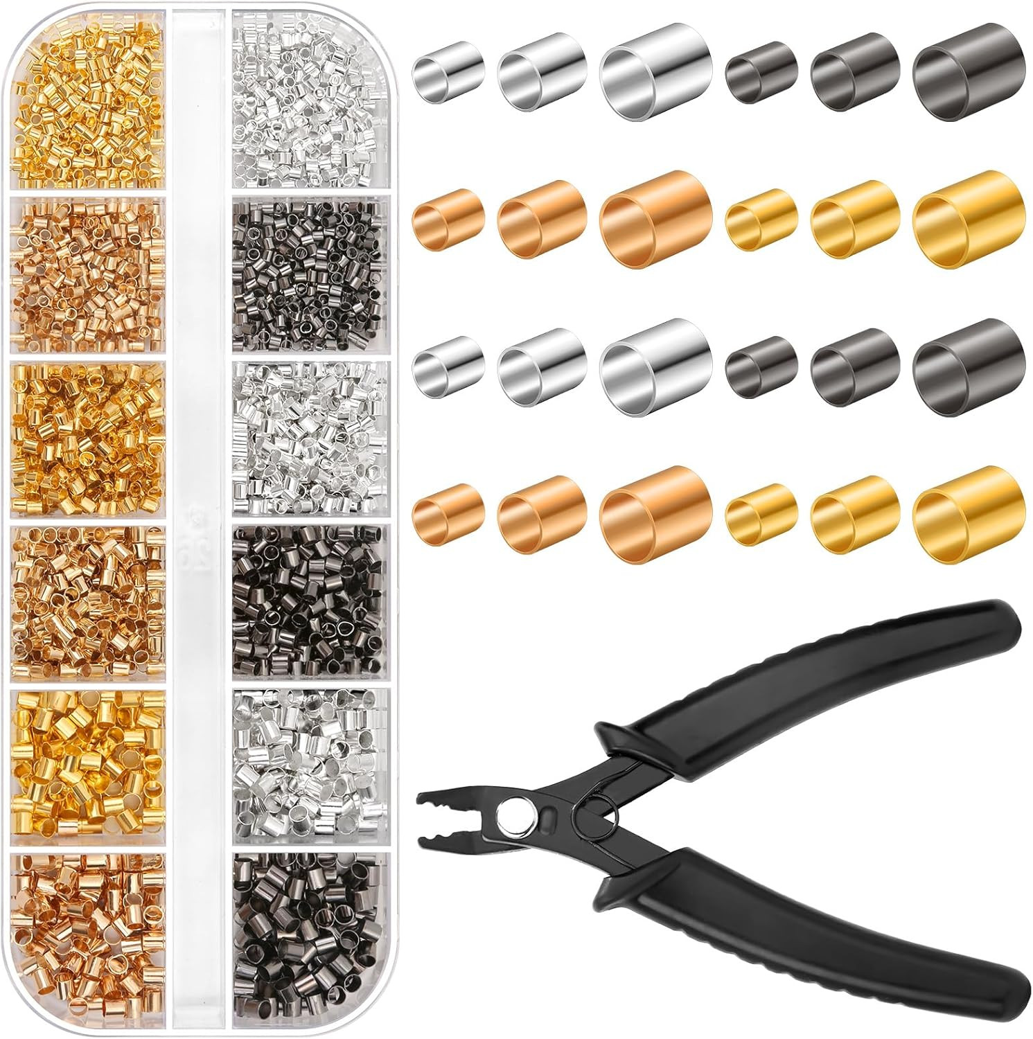 Crimping Beads for Jewelry Making, 2200 Pieces Crimp Tubes with Crimping Pliers