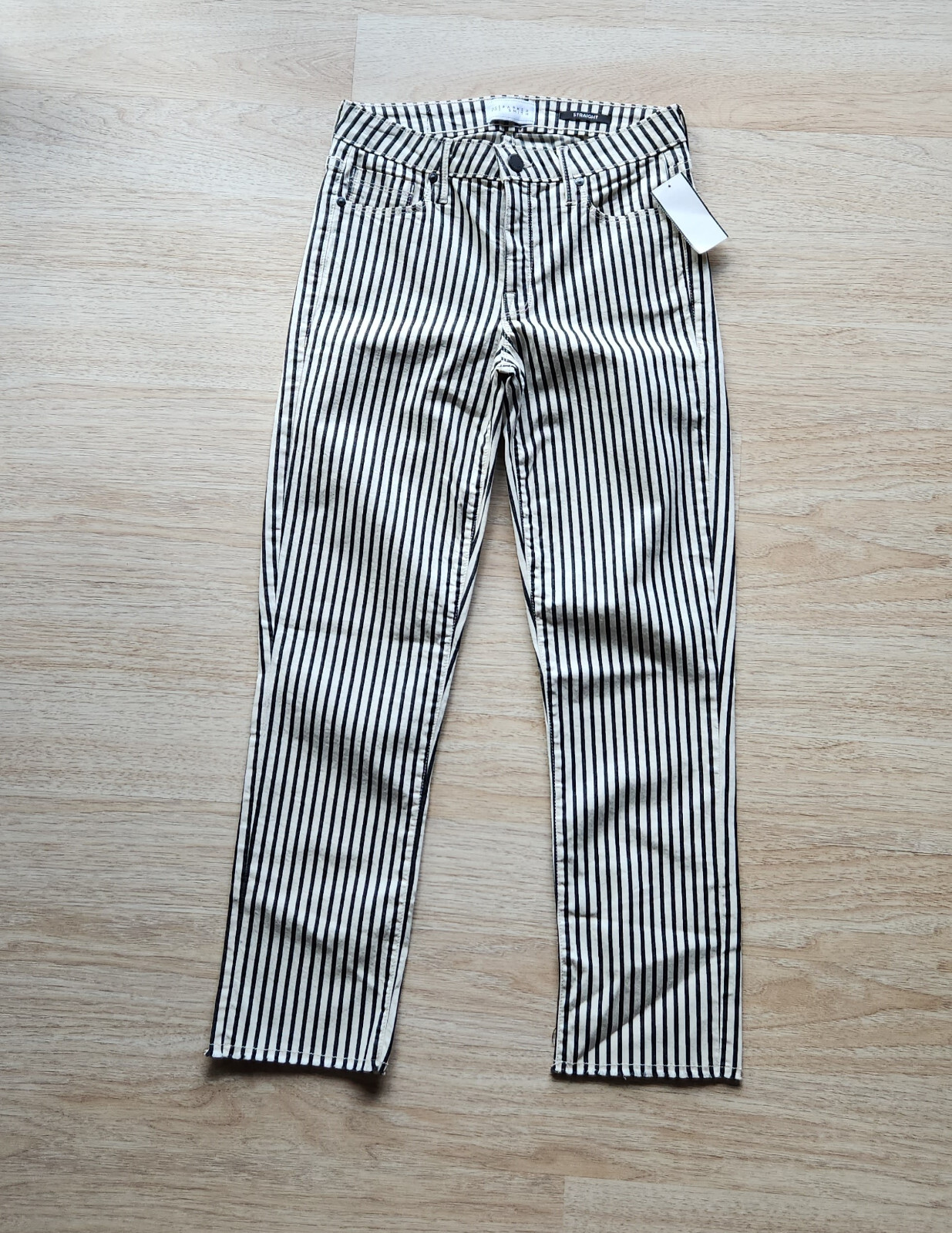 как выглядит NWT Parker Smith Carbon Striped Straight Jeans Stretch Zip Pocket Women 27 198 фото