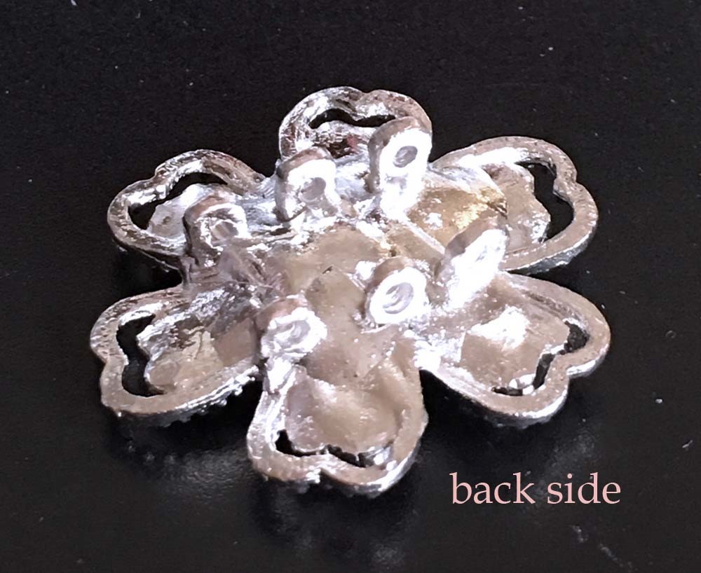 30mm Crystal Rhinestone Silver Plated Pewter Flower Focal Pendant