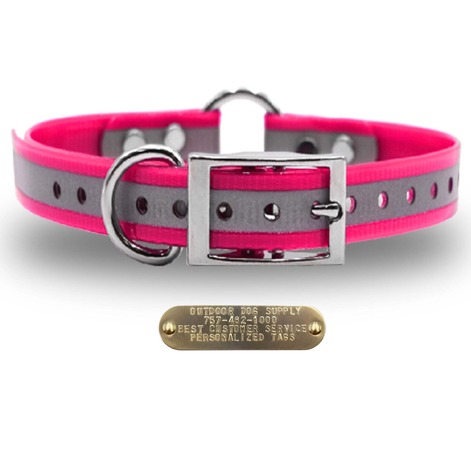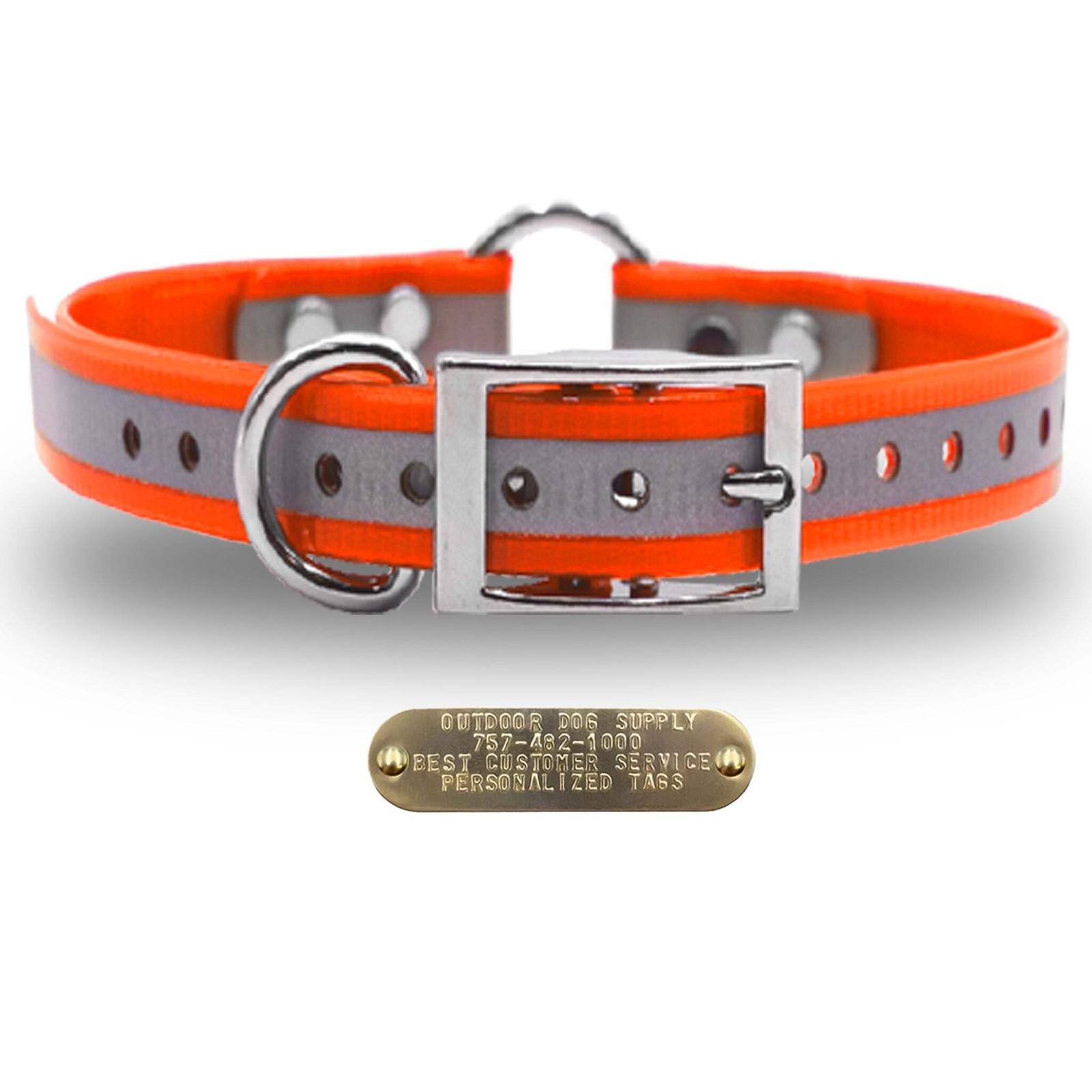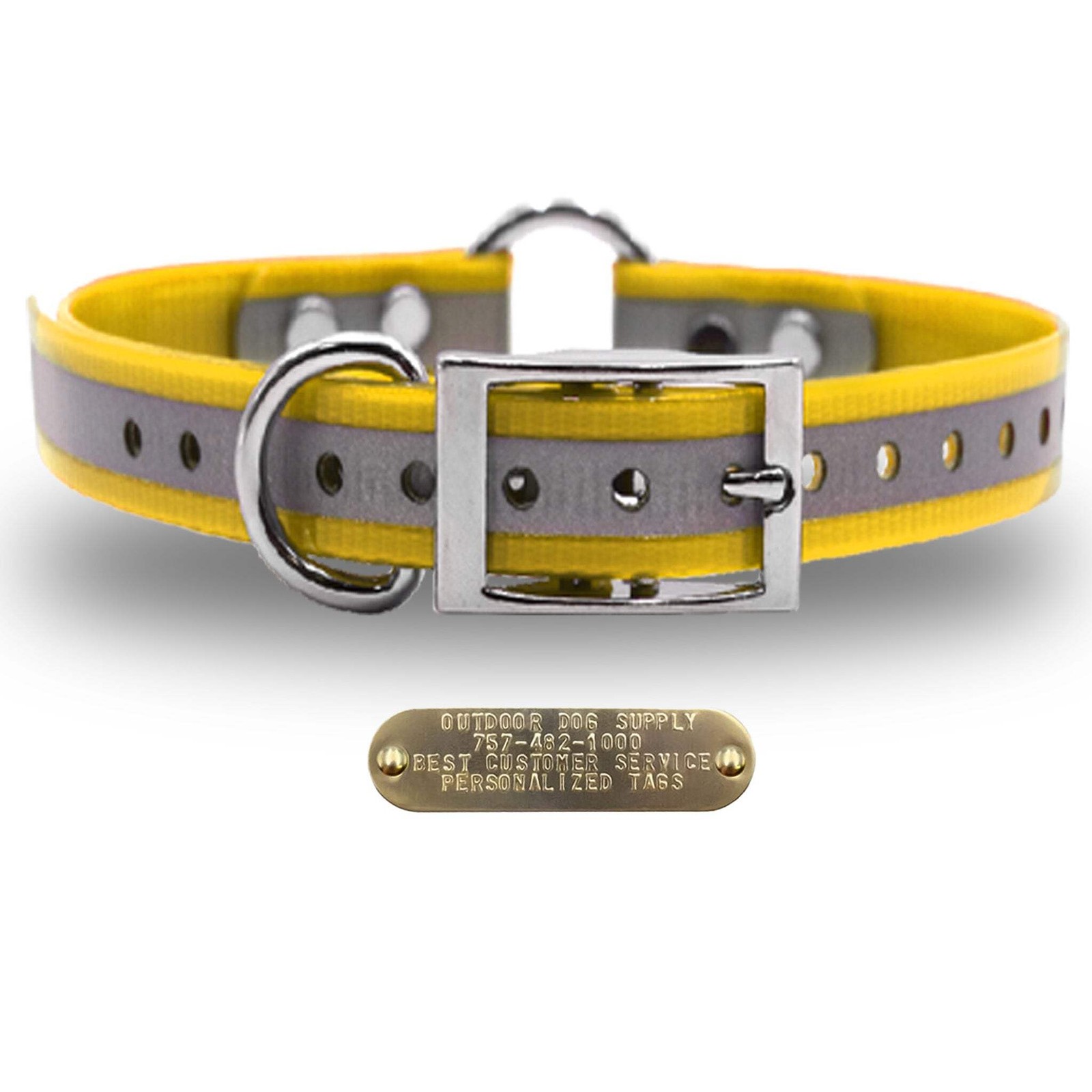 1 Reflective Premium Glow Tuff Center Ring Dog Collar with Brass Name Plate