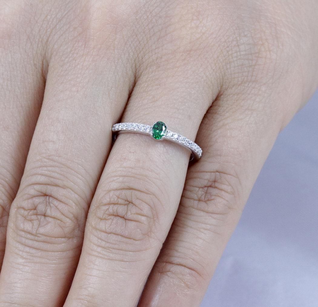 как выглядит OVAL GREEN CZ ENGAGEMENT RING STERLING SILVER BRIDAL WEDDING BAND 2.5-15 ML3277 фото