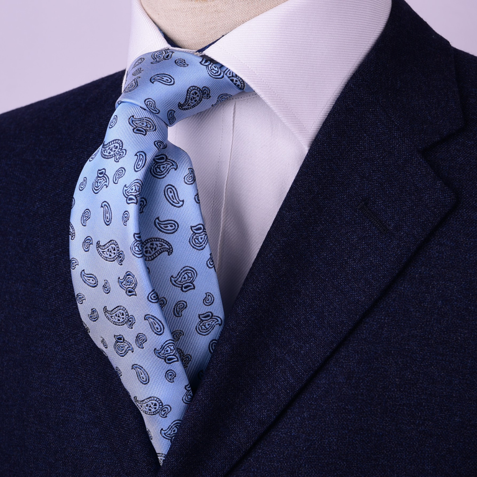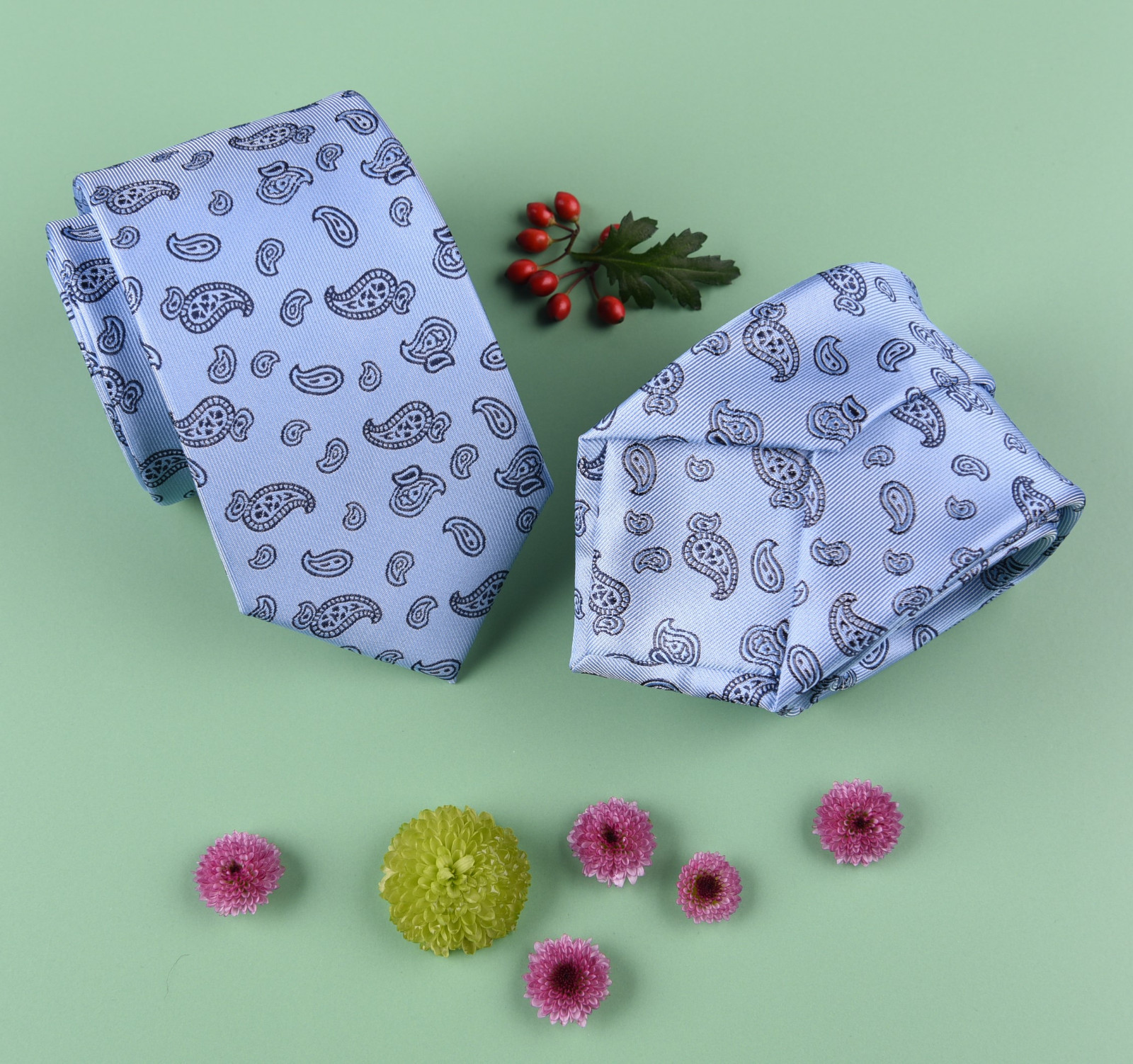 Light Blue Paisley Floral Skinny 3 Tie Designer Luxury Lavish Baroque Fashion
