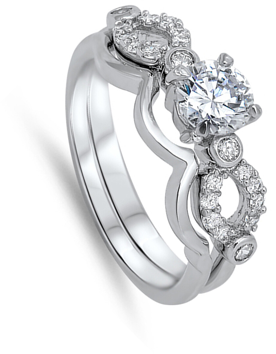 как выглядит Clear CZ Unique Rounded Solitaire Ring Set .925 Sterling Silver Band Sizes 5-10 фото