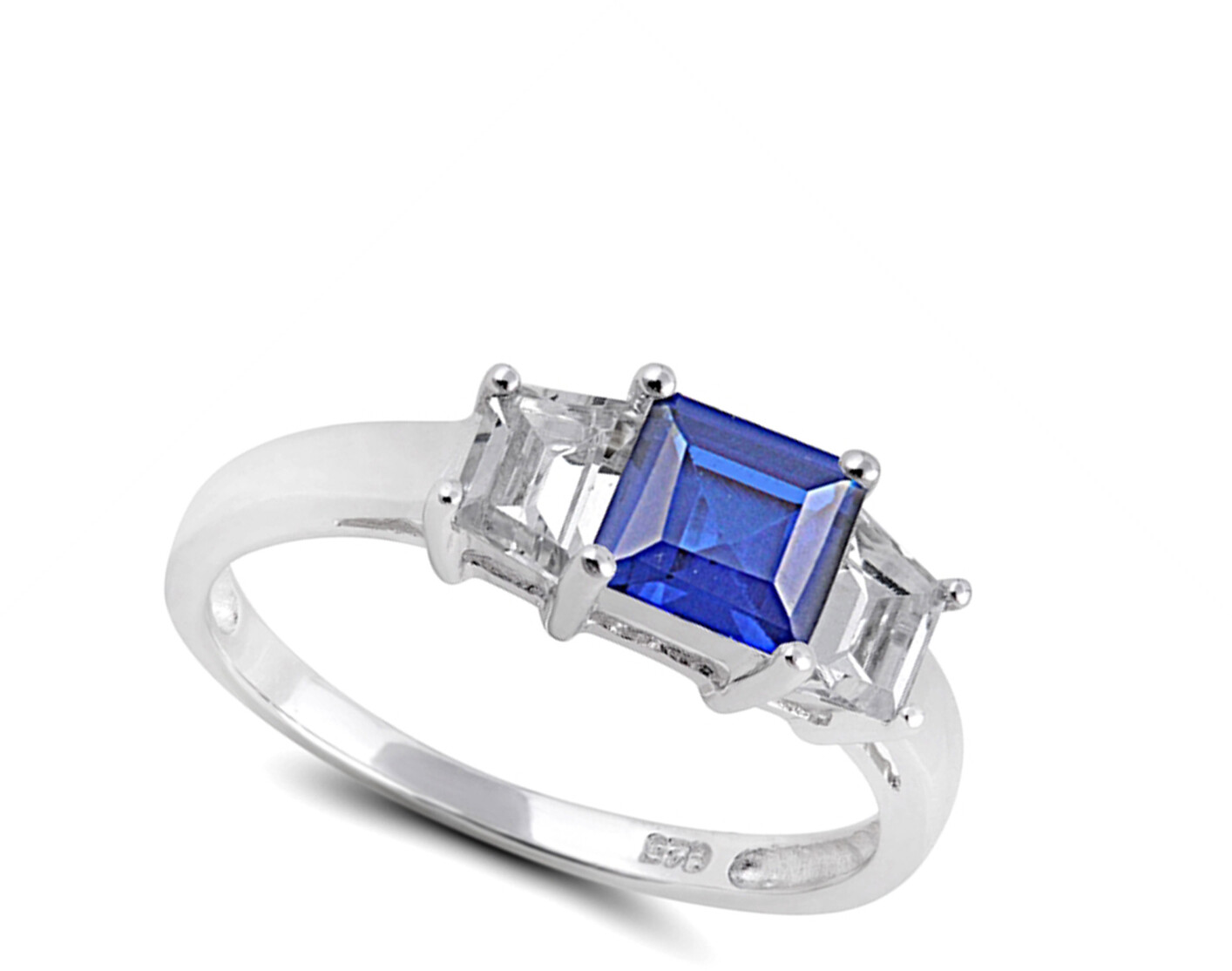 как выглядит Blue CZ Square Solitaire Ring New .925 Sterling Silver Band Sizes 5-9 фото