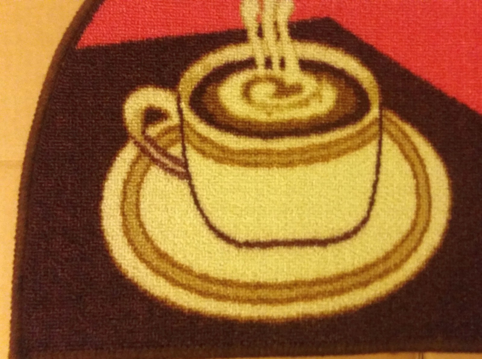 PRINTED NYLON KITCHEN RUG 18x 30 2 COFFEE CAPPUCCINO CUPS, by ST, slice