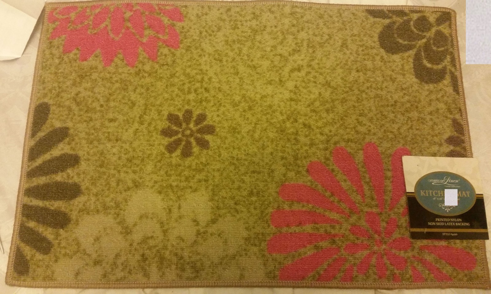 PRINTED NYLON KITCHEN RUG nonskid back 18 x 28 COLORFUL FLOWERS, AL