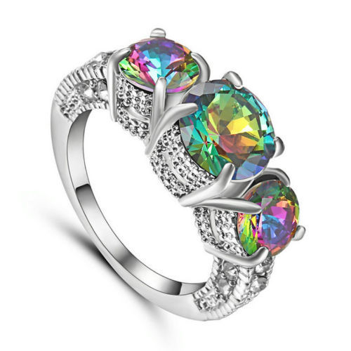 как выглядит Elegant 925 Sterling Silver Rainbow Mystical Topaz New Fashion Ring Size 8 фото