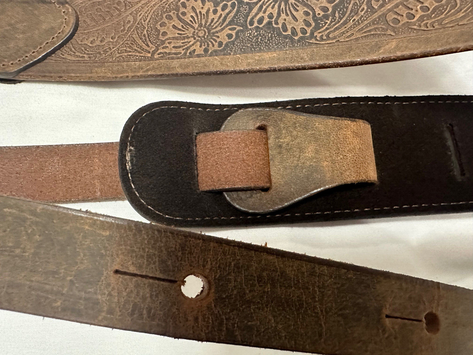 как выглядит LM Brown worn leather paisley patterned guitar strap - NEW WBF-22 BR фото