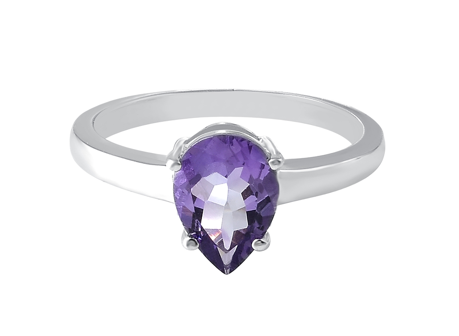 Amethyst Pear Cut Sterling Silver Ring Set In Rhodium