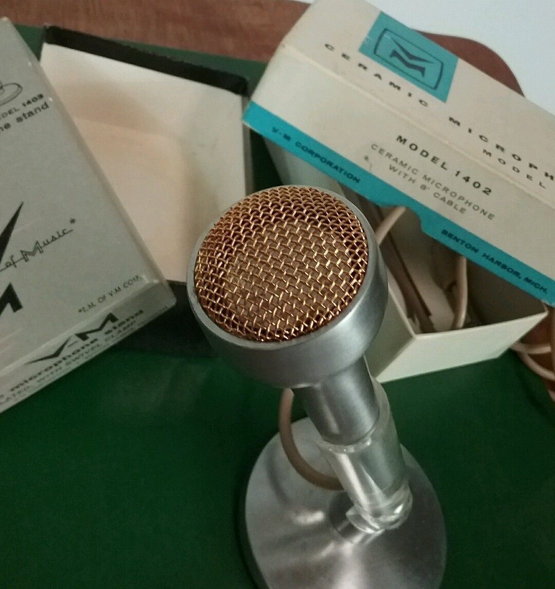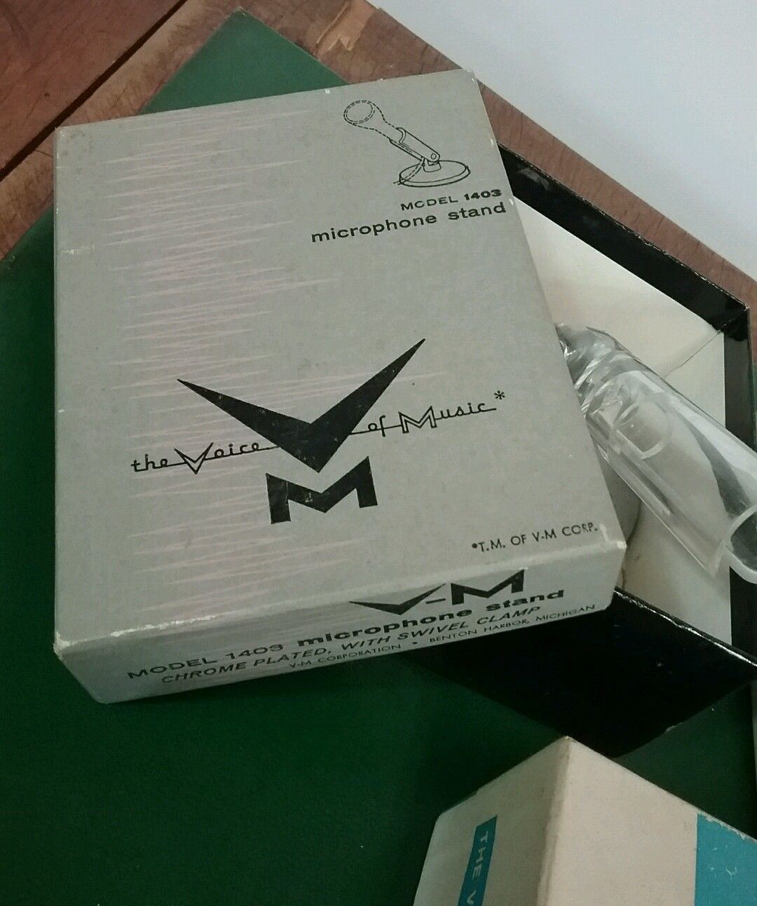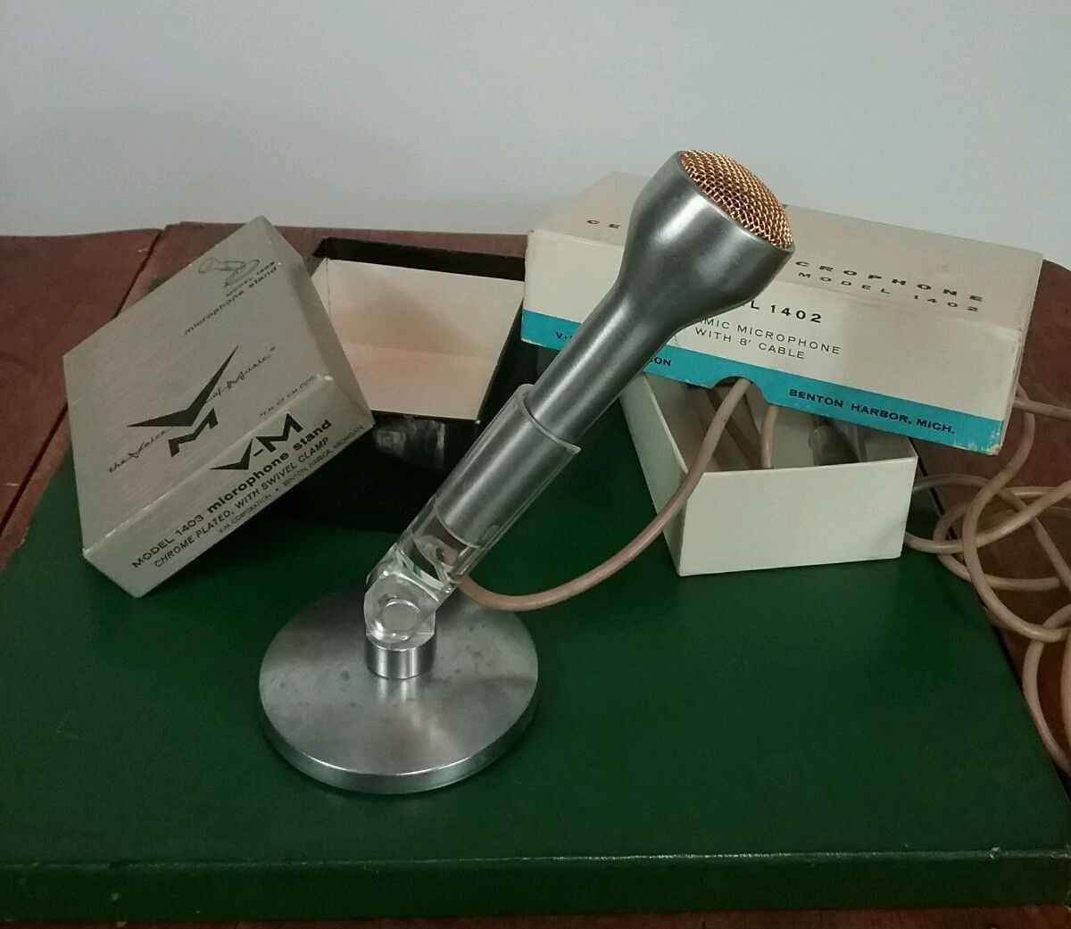 Vintage VM Benton Microphone and Stand Music Radio Mid Century Audio Stainless