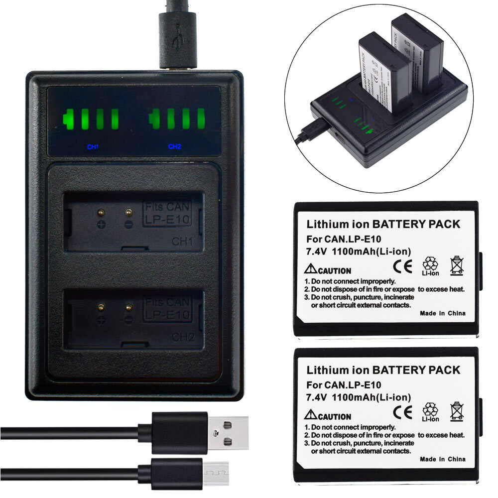 LP-E10 Battery Pack / DUAL Charger for Canon Rebel T6 T7 1500D 1300D Camera