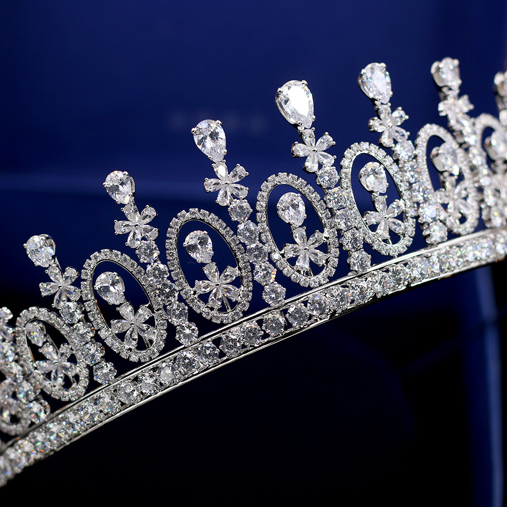 Luxury All CZ Cubic Zirconia Flower Queen Wedding Princess Tiara Crown For Women