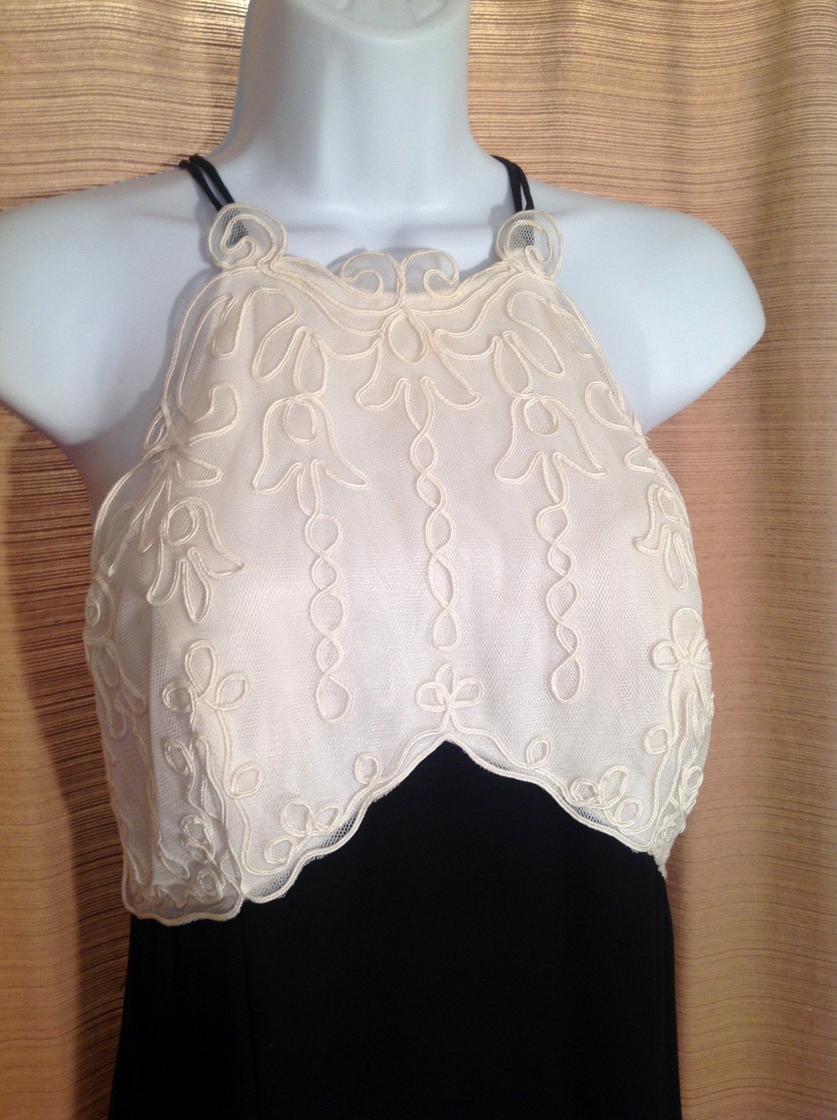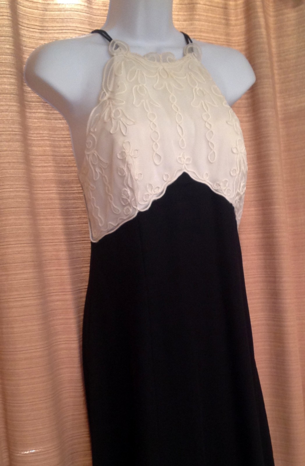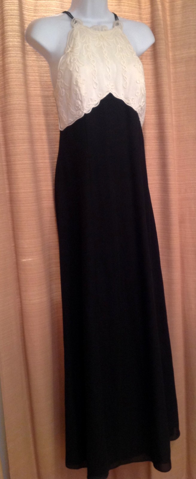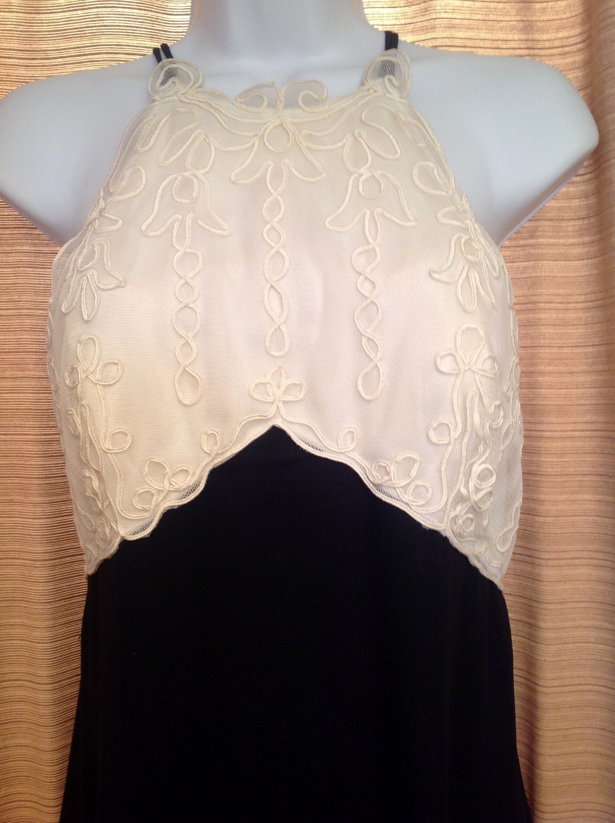 как выглядит Womens RHAPSODY Size 6 Black Ivory Embroidered Bust Formal Maxi PROM DRESS фото