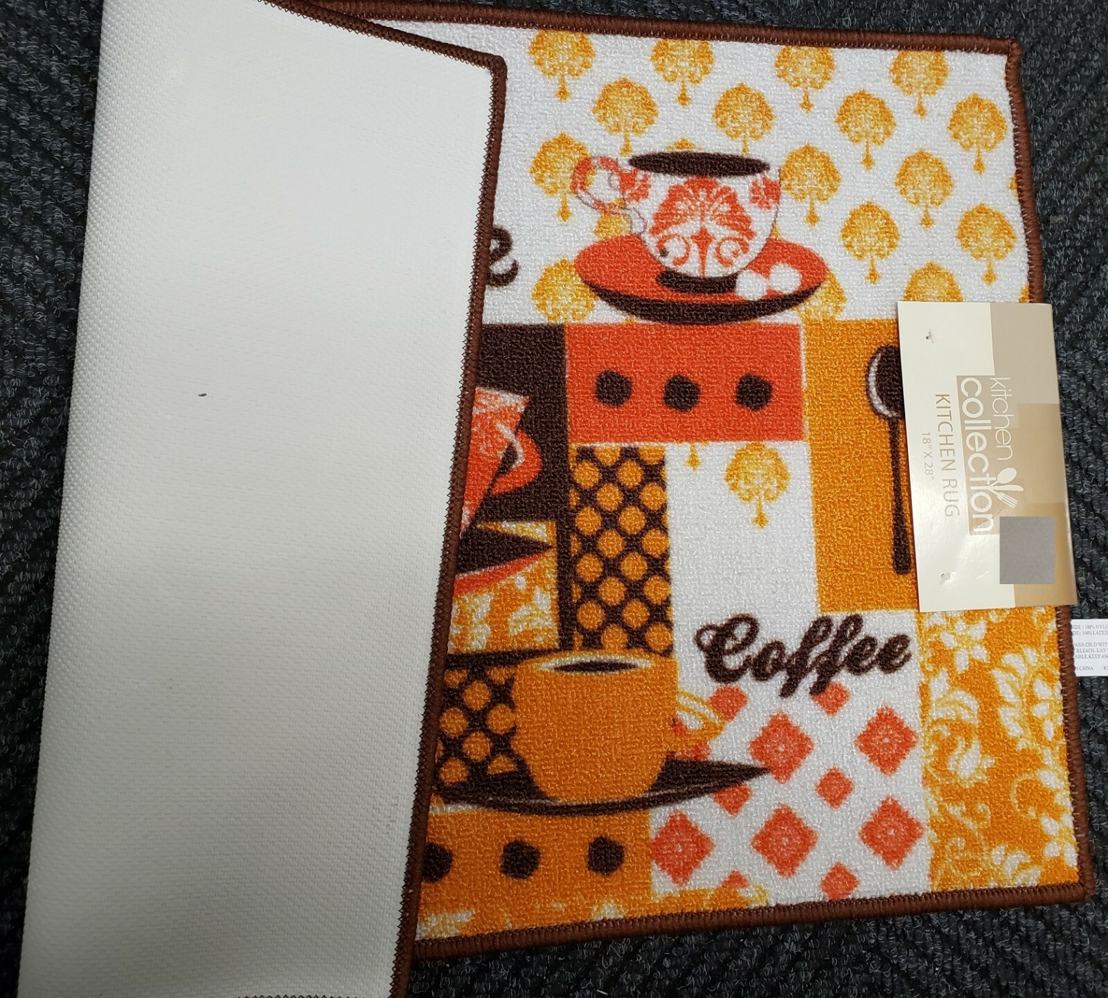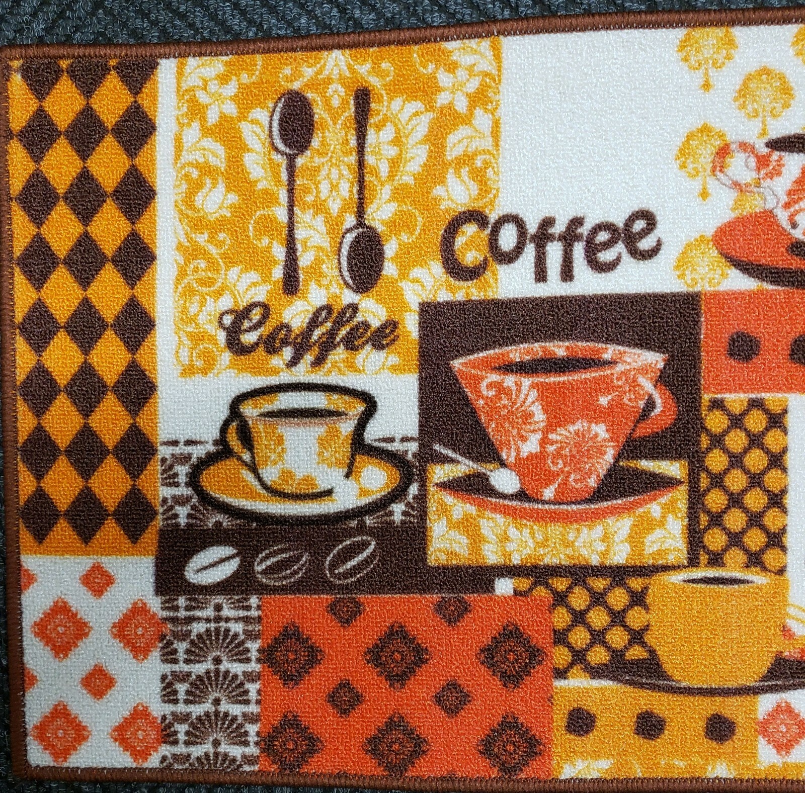 PRINTED KITCHEN RUG nonskid back 18 x 28 COFFEE CUPS SPOONS, Soho