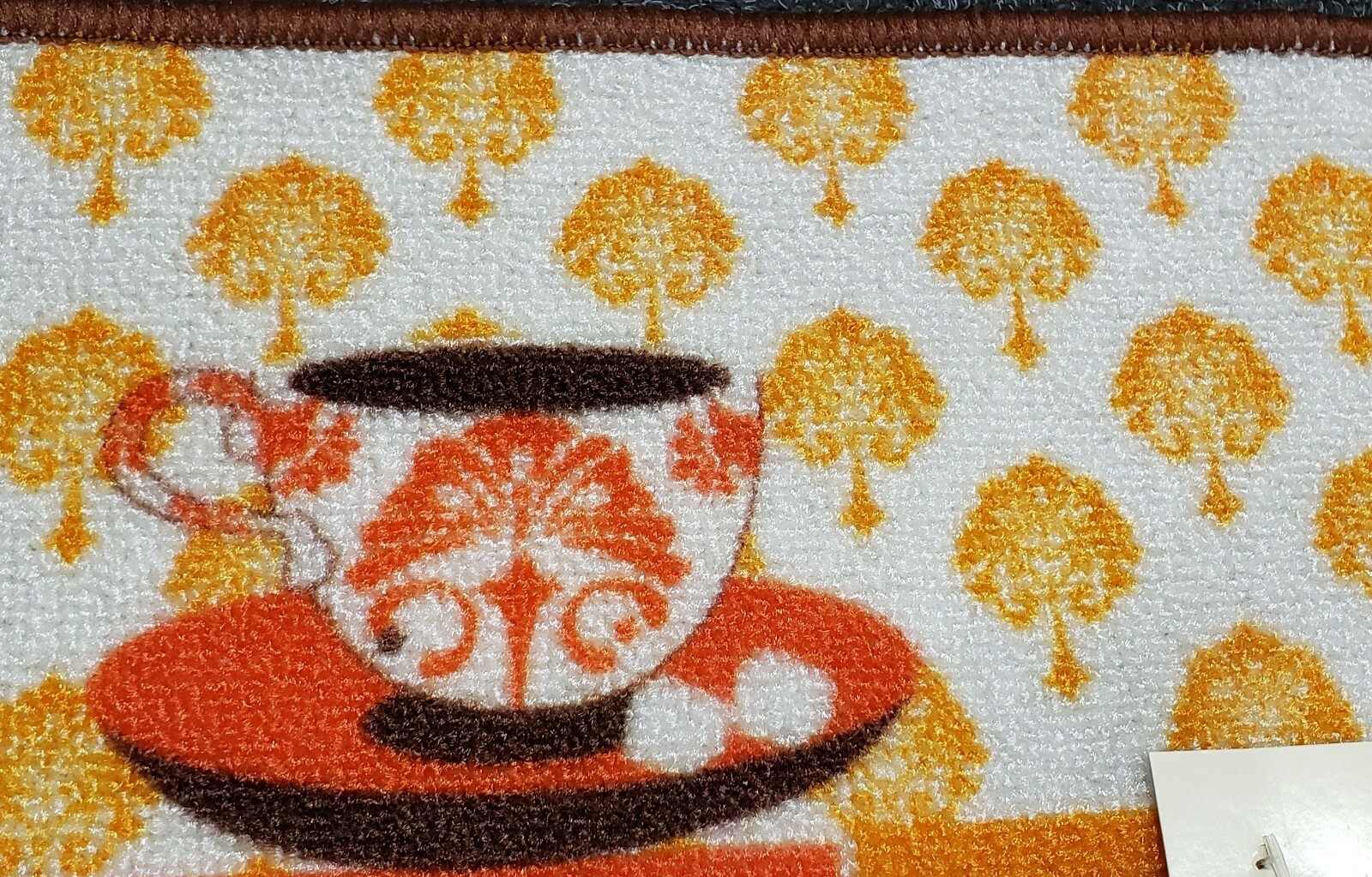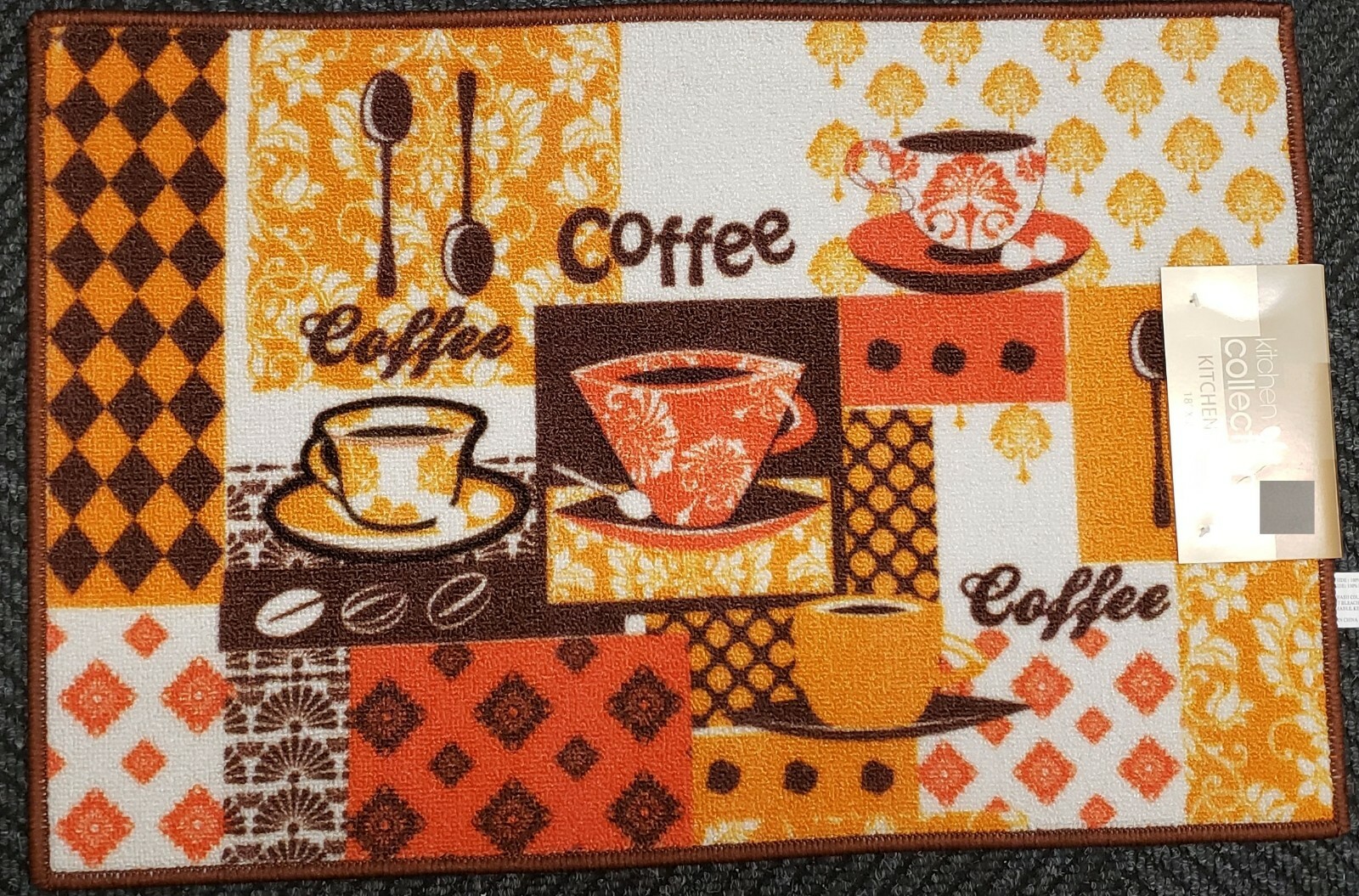 как выглядит PRINTED KITCHEN RUG nonskid back 18" x 28" COFFEE CUPS SPOONS, Soho фото