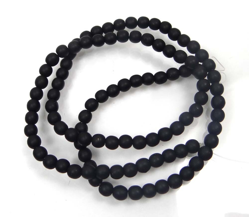 100 Czech Frosted Sea Glass Round Beads - Matte - Black / Jet 4mm