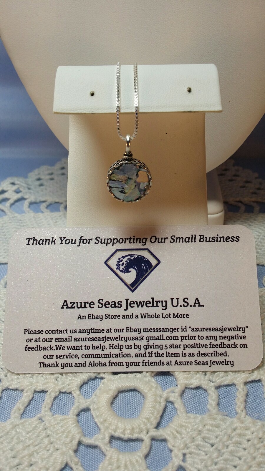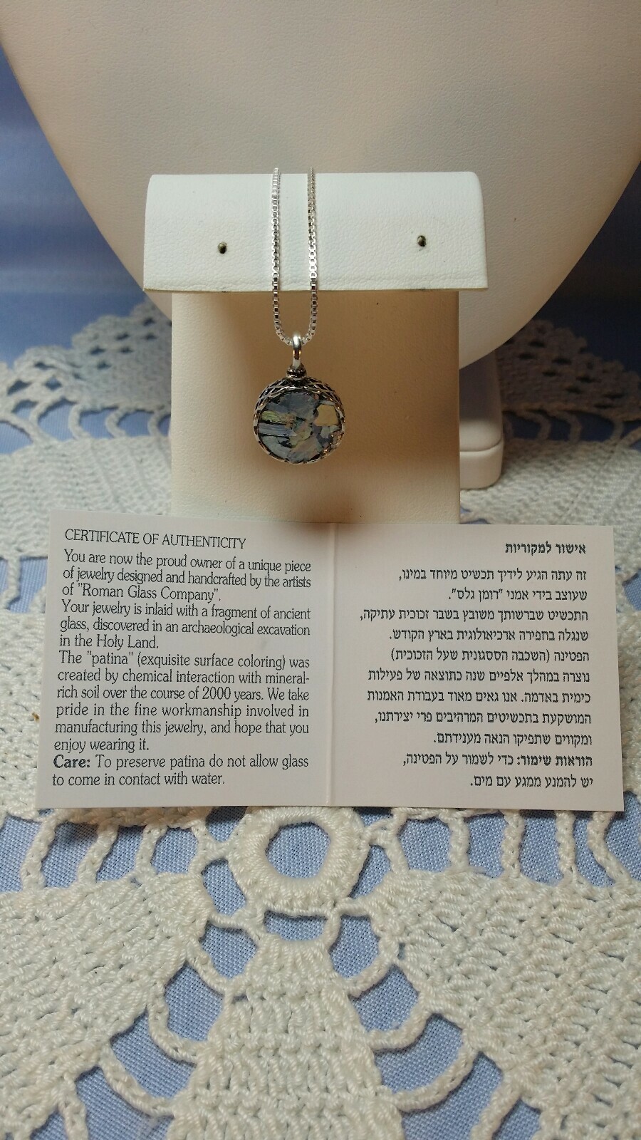 как выглядит Roman Glass Pendent with sterling silver chain 18inch фото