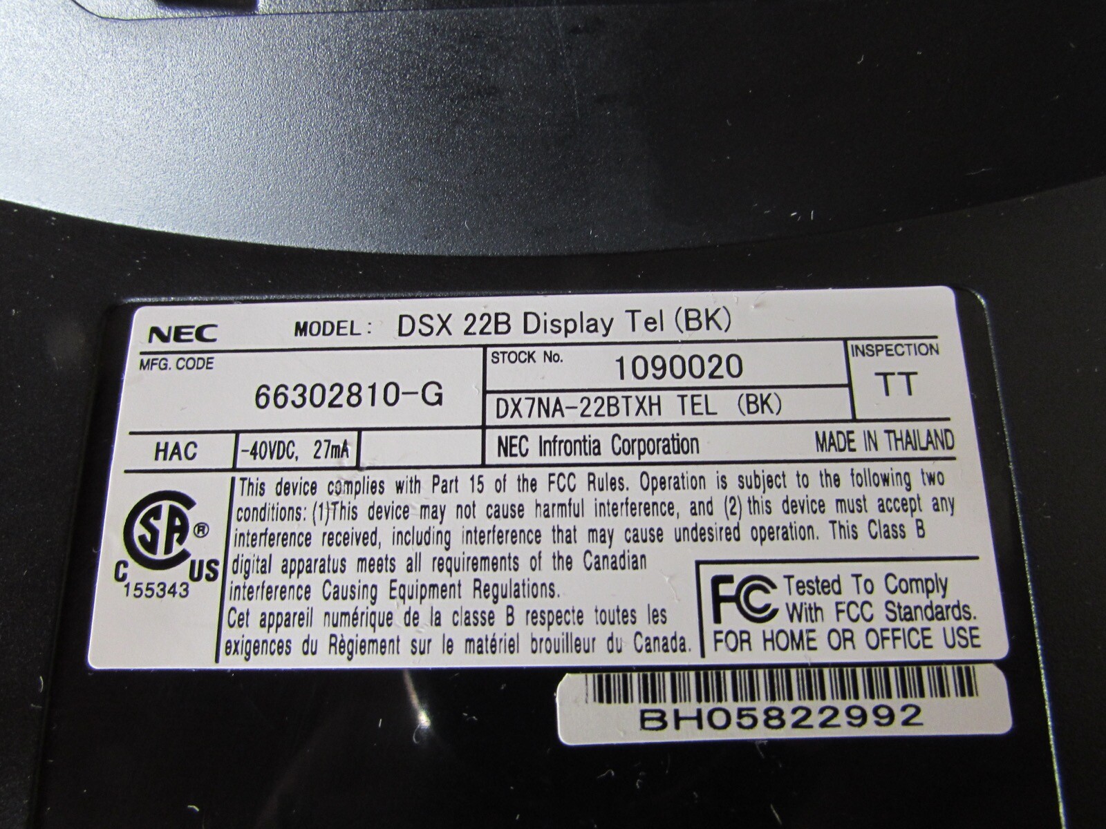 NEC DSX 22B Telephone Black Display Speakerphone 1090020 DX7NA-22BTXH
