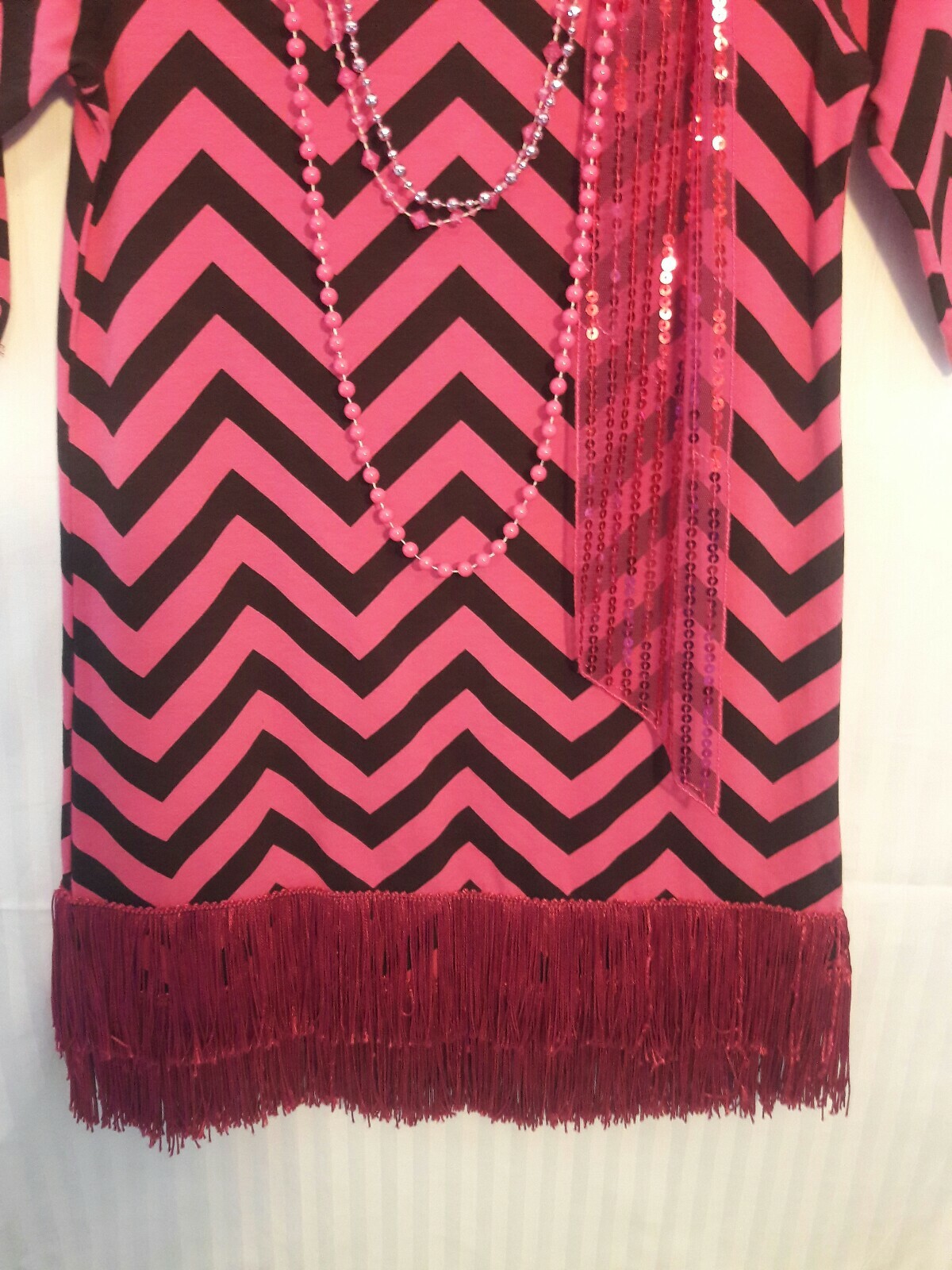 GIRL'S 1920's Flapper COSTUME Black-Pink Chevron Fringe Dress- 6 Piece Outfit LG