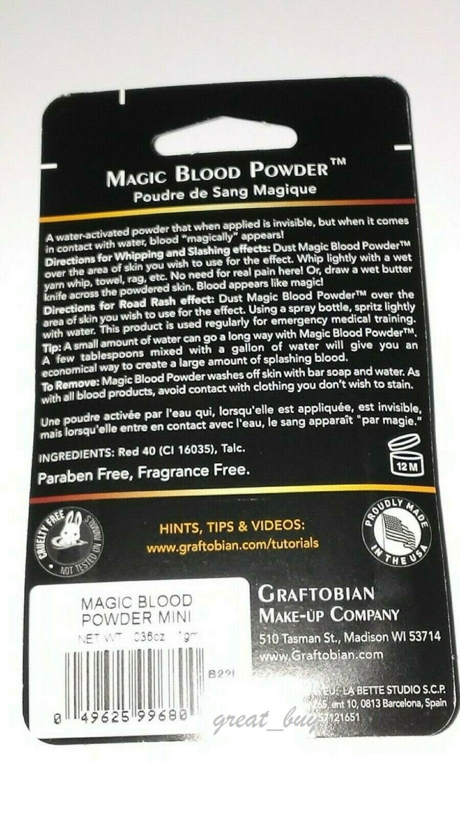 как выглядит Graftobian Magic Blood Powder Mini Pro F/X Halloween,Stage,Theatrical Makeup фото