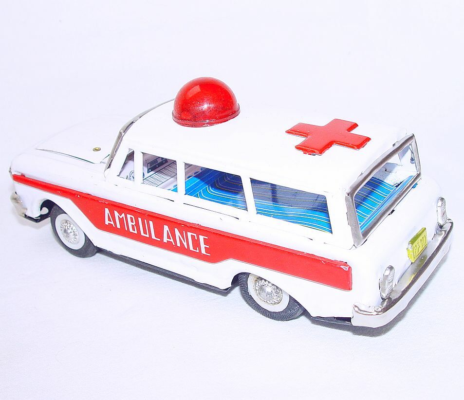 China MF-111 FORD CHEVROLET AMBULANCE TRUCK Car Tin Friction Toy MIB 80 RARE