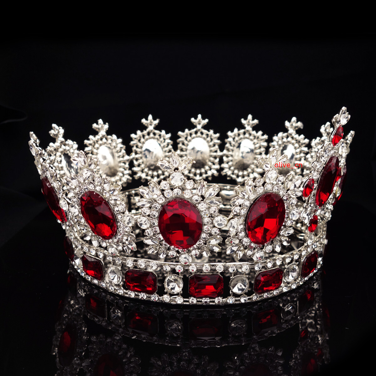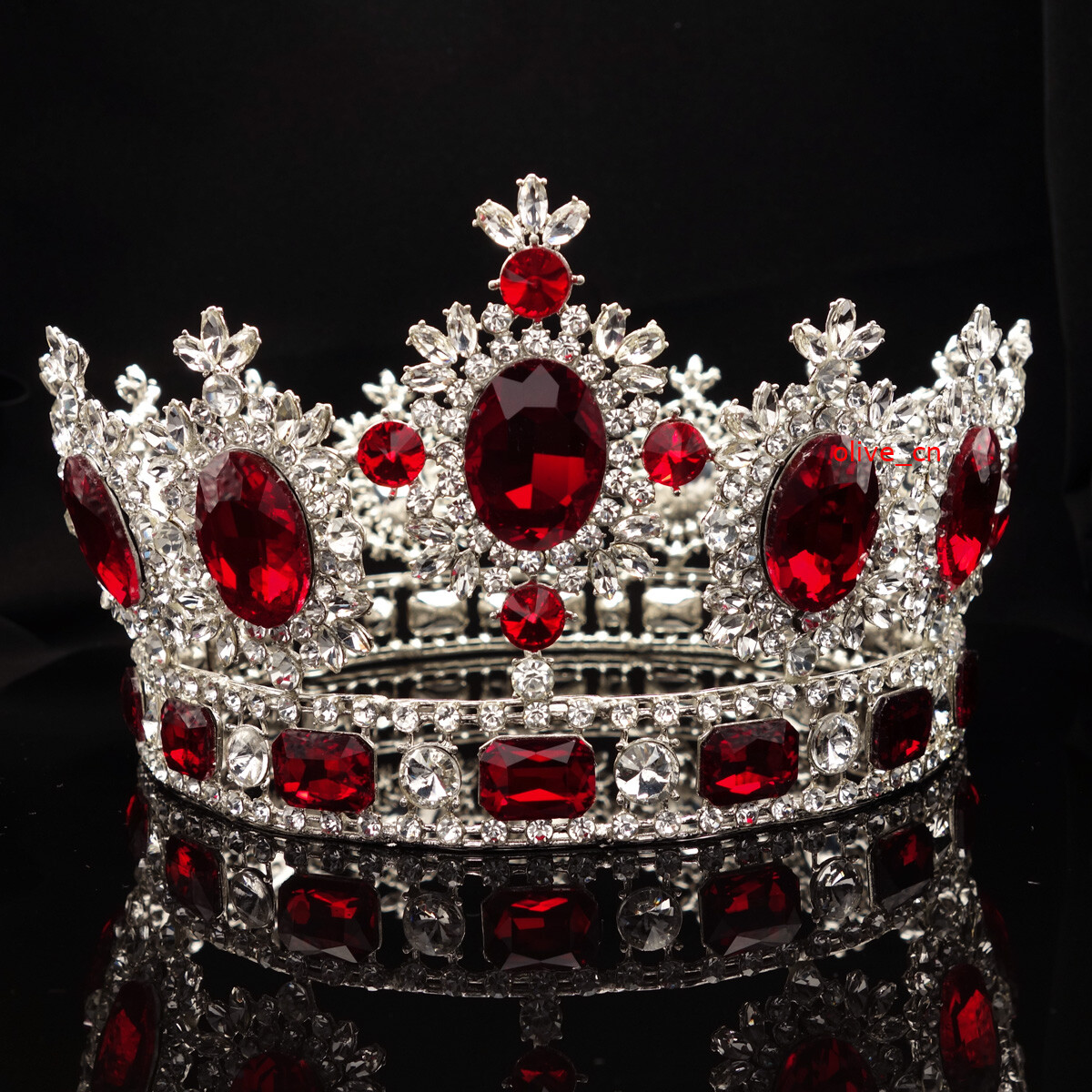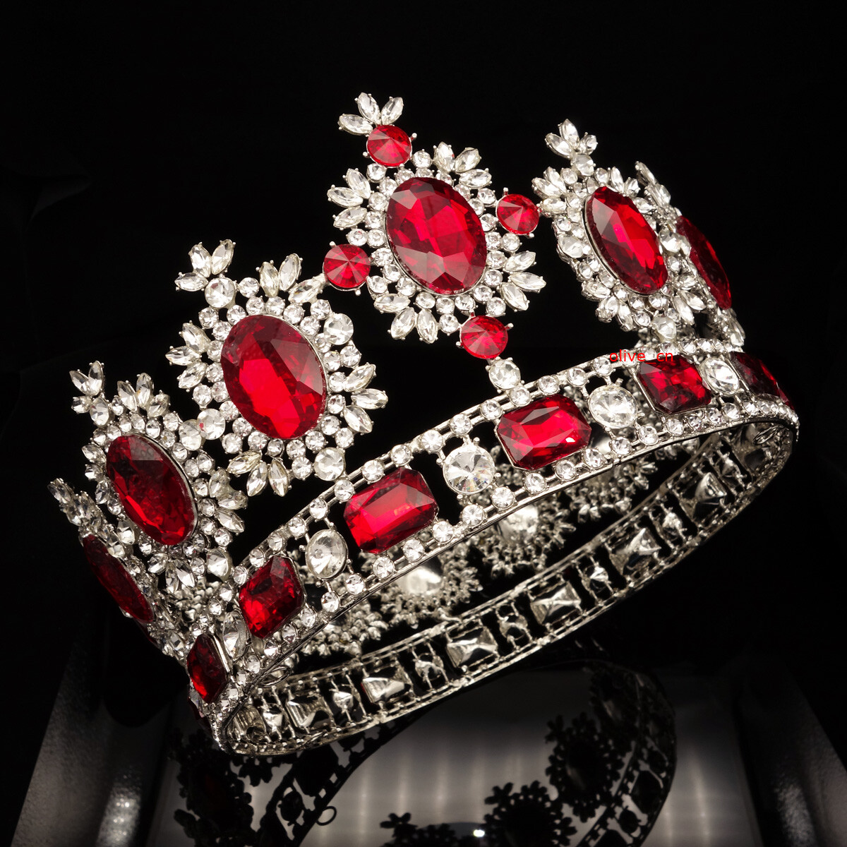 6.7 Wide Large Ruby Red Crystal Silver Queen Crown Wedding Prom Party Pageant