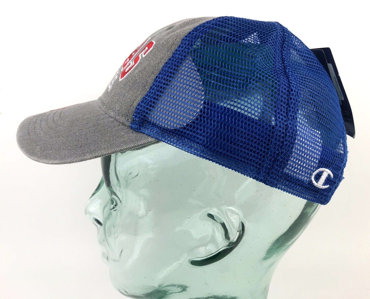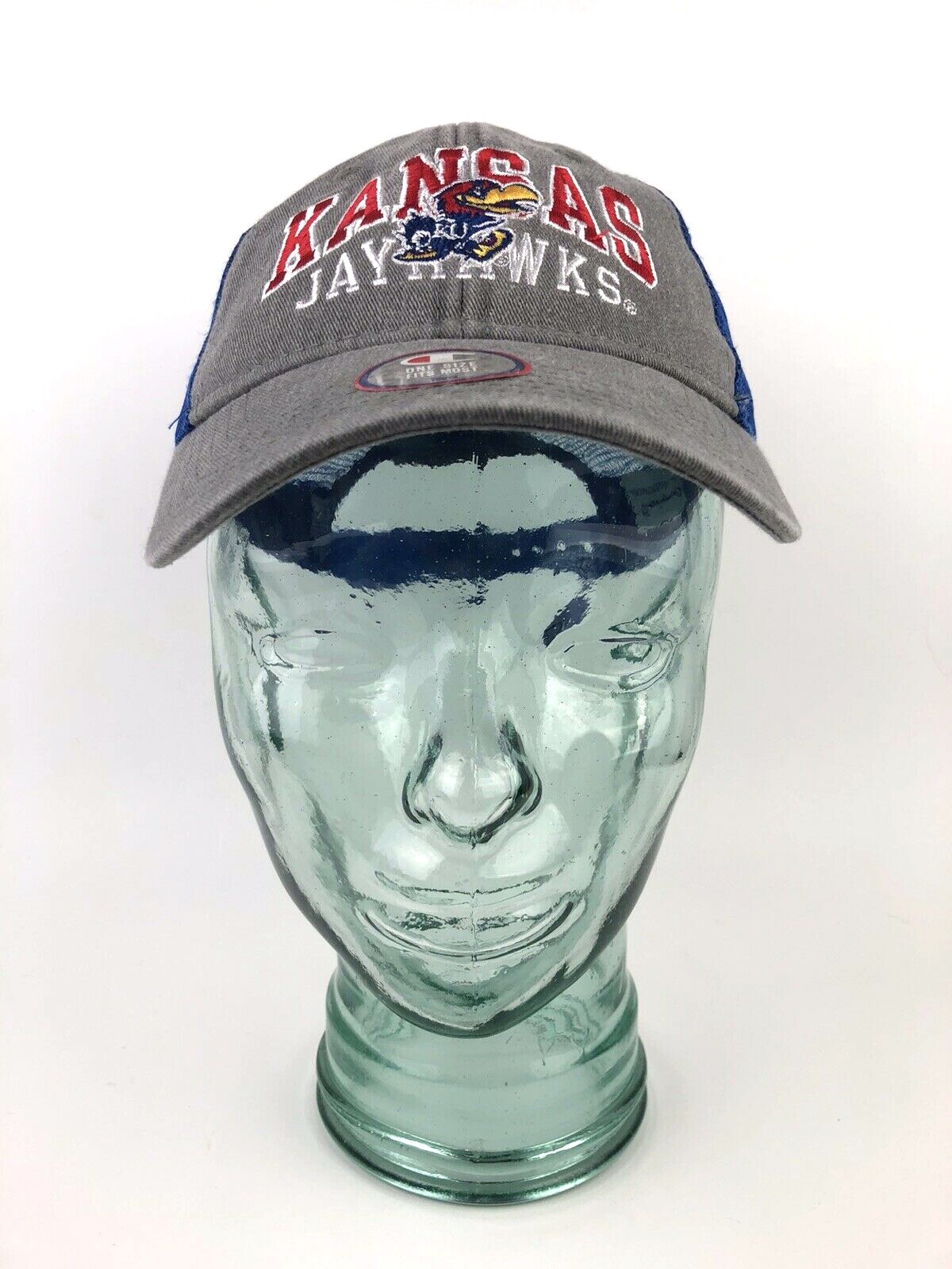 как выглядит Kansas Jayhawks KU Hat SNAP BACK Youth Champion Gray Blue Trucker фото