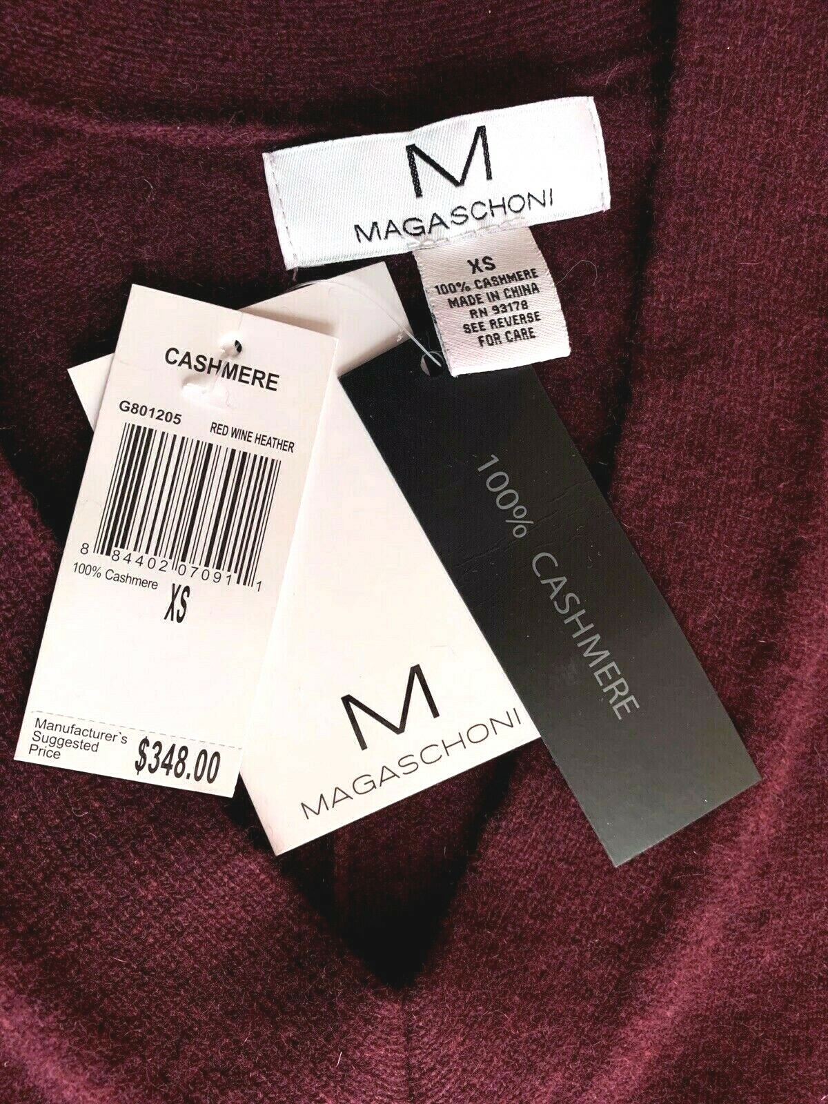 MAGASCHONI CASHMERE PULLOVER SWEATER V-NECK RED WINE HEATHER SZ US XS NWT 348