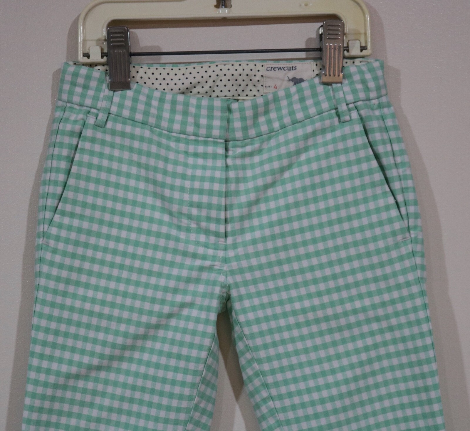 как выглядит Crewcuts Girls Size 4 Green And White Checked Four Pocket Casual Crop Pants фото