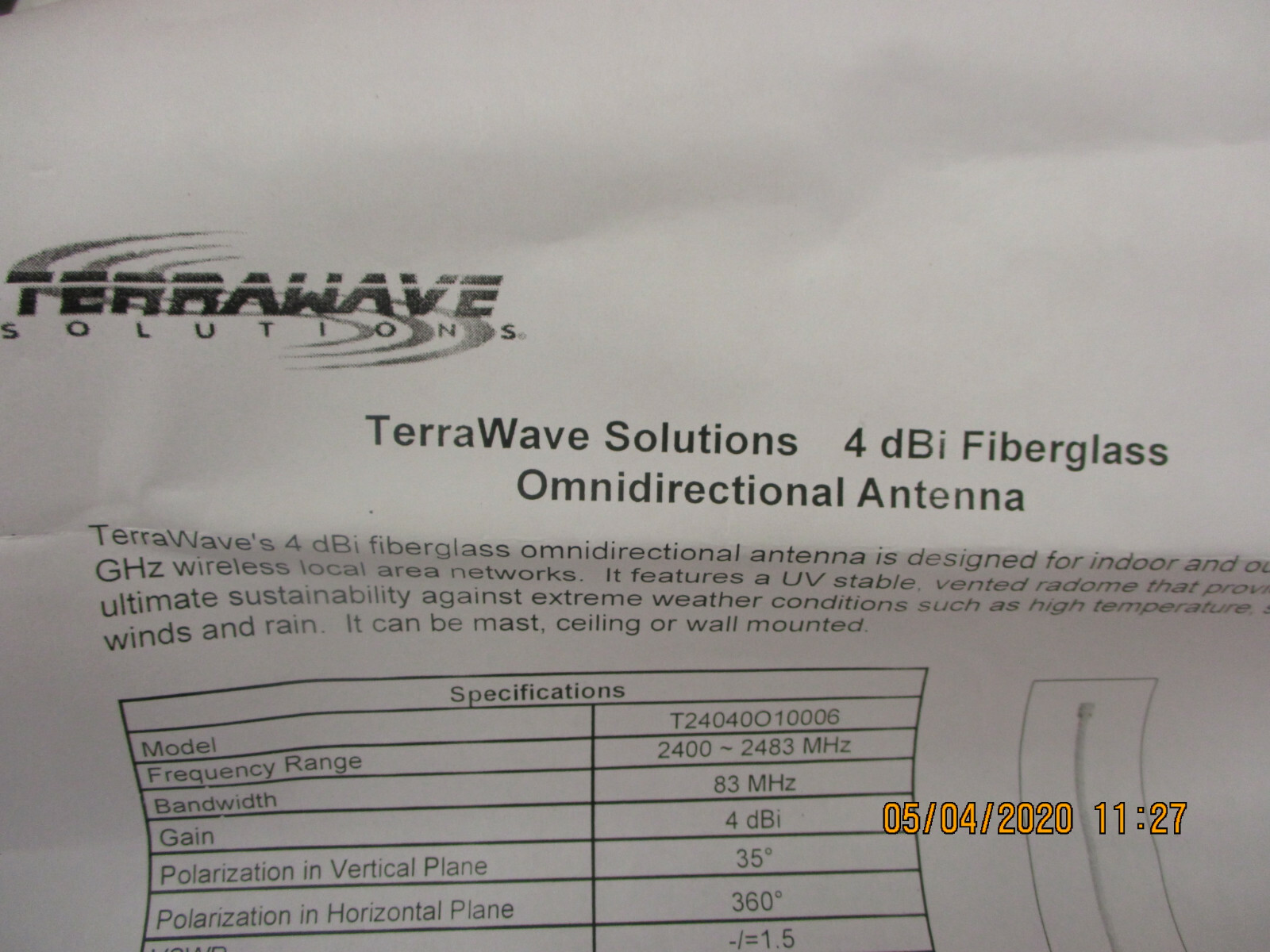как выглядит New - Terrawave T24040O10006, Omni Antenna фото