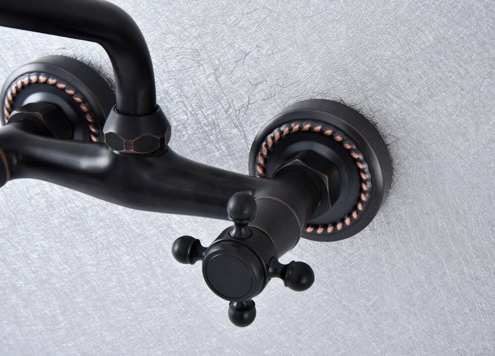 Black Oil Rubbed Brass Kitchen Faucet Bathroom Sink Mixer Tap Wall Mount ssf739