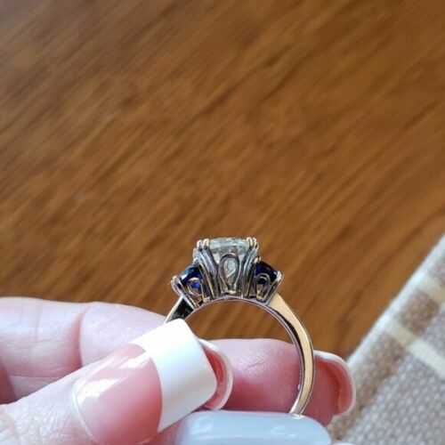как выглядит 1.90CT Round Cut White Blue CZ Engagement Ring Solid 925 Sterling Silver фото